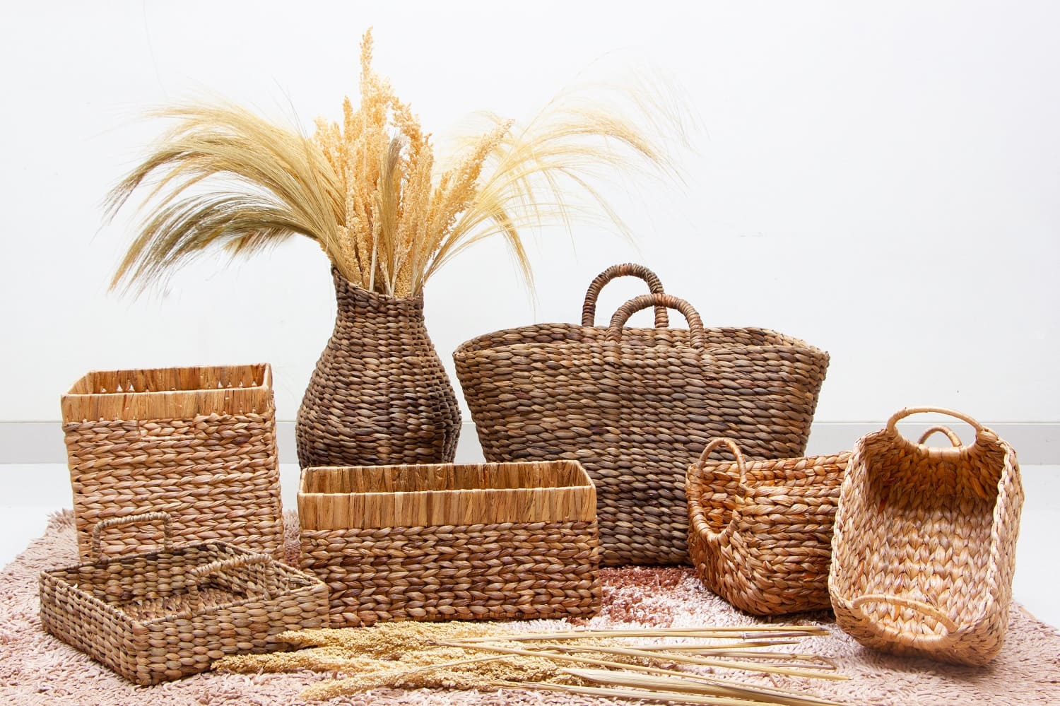 4. Weaving & shaping: artisans braid/weave into baskets, mats, bags and utility forms—by hand or with support tools.