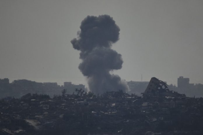 Smoke rises to the sky following an Israeli bombardment in the Gaza Strip as seen from southern Israel, Thursday, May 22, 2025. AP/PTI(AP05_22_2025_000384B)