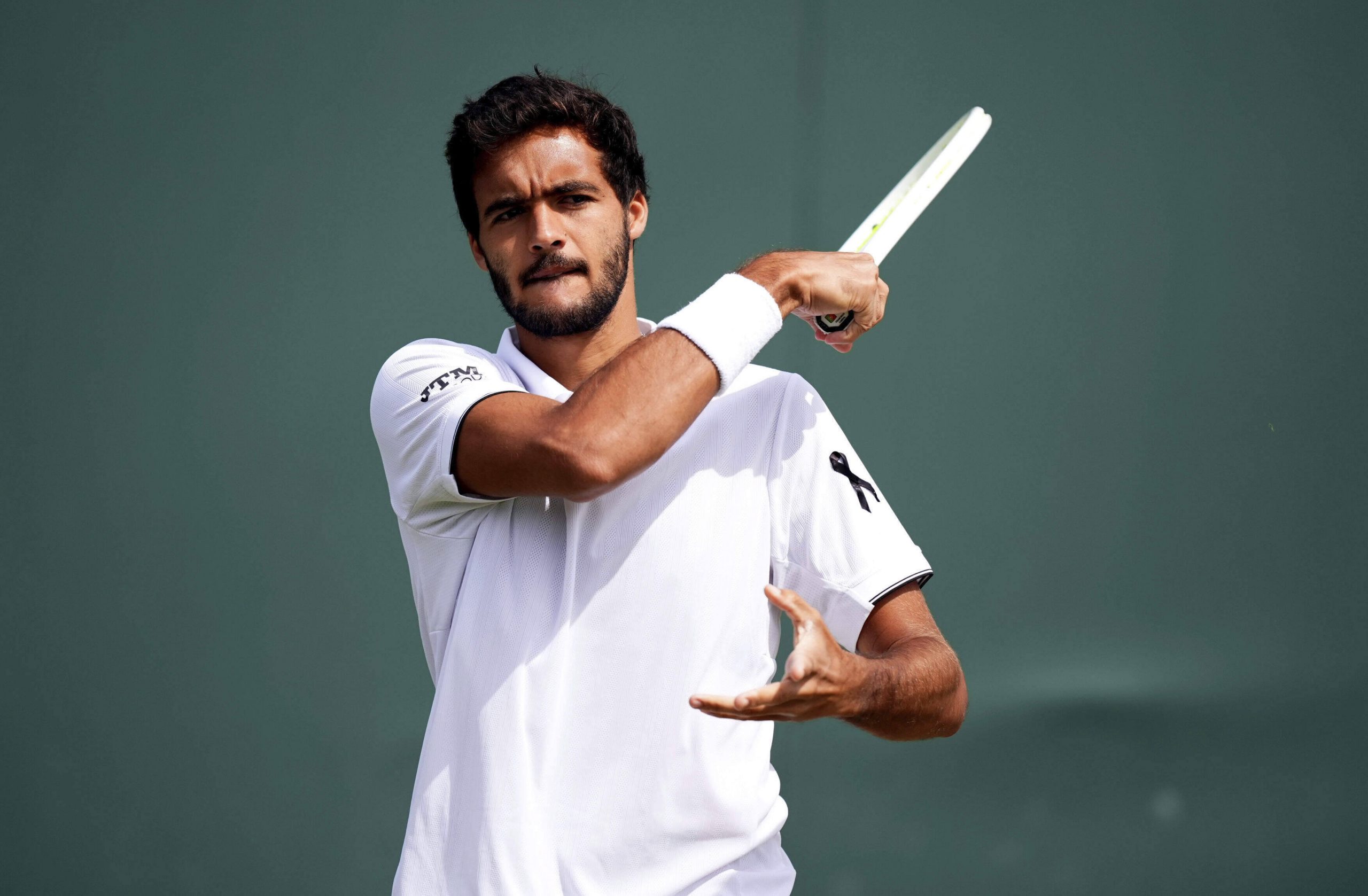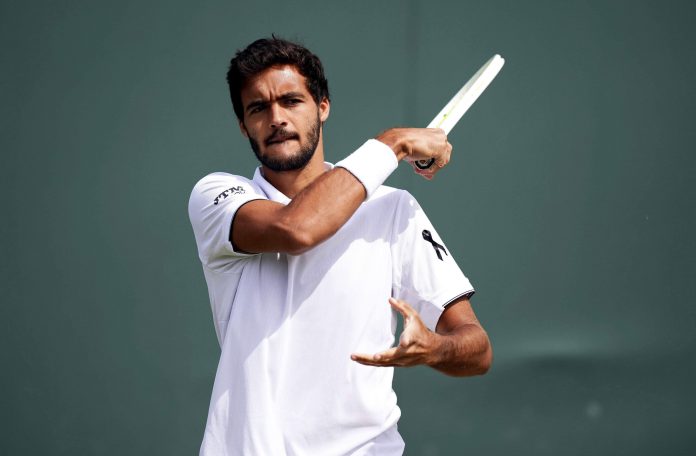 Francisco Cabral of Portugal, wearing a black ribbon in memory of compatriot and soccer player Diogo Jota, on day five of the Wimbledon Championships in, London, Friday July 4, 2025. AP/PTI(AP07_04_2025_000228B)