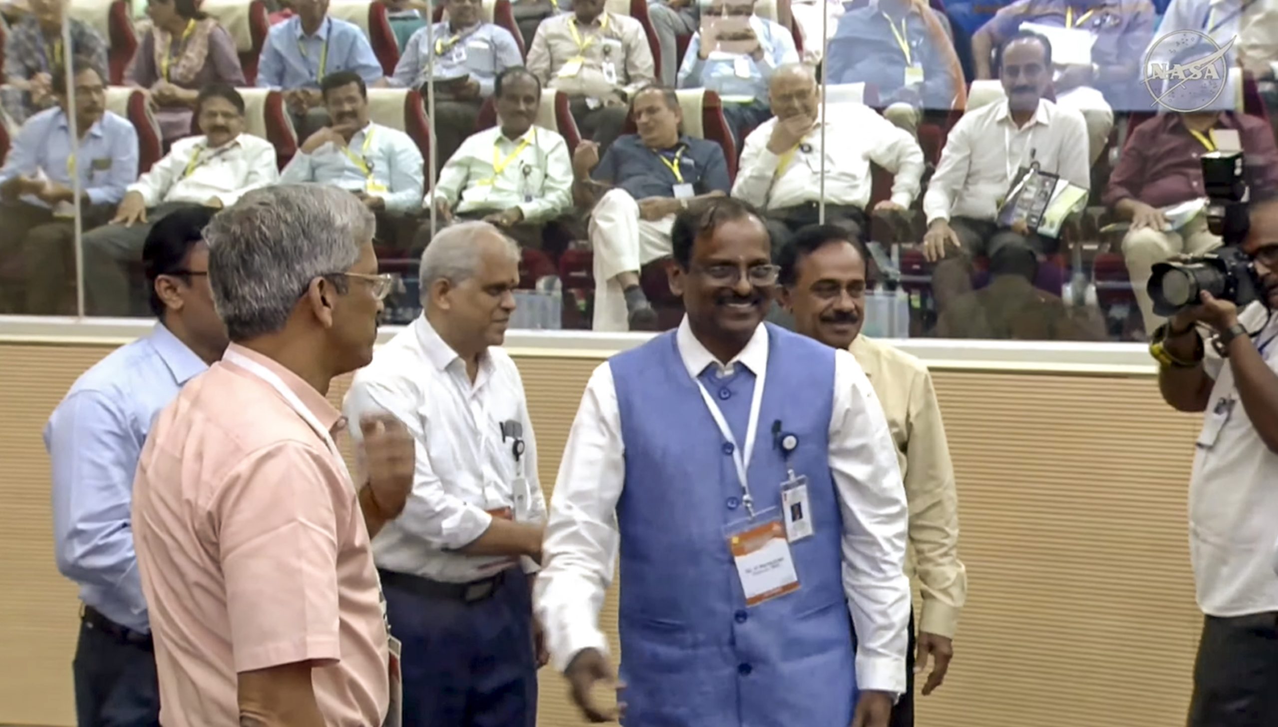 **EDS: THIRD PARTY IMAGE** In this screengrab via NASA Youtube, ISRO Chairman V. Narayanan after ISRO's launch vehicle GSLV-F16 successfully injected the NISAR earth observation satellite in designated orbit, at the Satish Dhawan Space Centre, in Sriharikota, Andhra Pradesh, Wednesday, July 30, 2025. (NASA via PTI Photo)(PTI07_30_2025_000500B)
