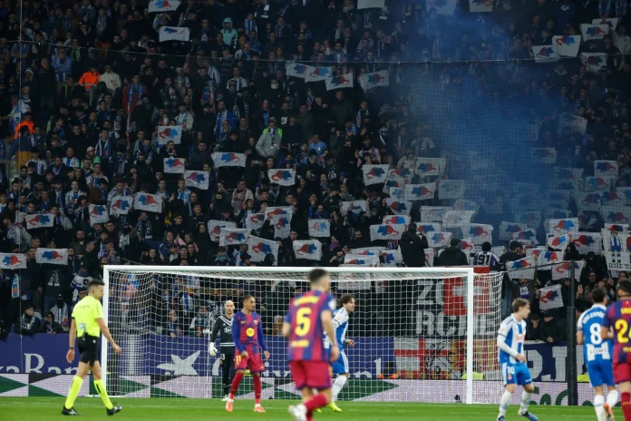 Espanyol went as far as installing a thin mesh barrier behind the goals at RCDE Stadium to impede any object from being thrown toward the goalie from the stands. That did not dissuade the section of the club’s most fervent young supporters from holding up signs with the image of a rat in Barcelona’s burgundy-and-blue colors while shouting at García, a former fan favorite.