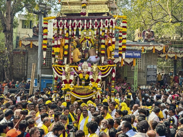 The Brahma Rathotsava at the historic Sri Kadu Mallikarjuna Swamy Temple in the Malleswaram locality of Bengaluru was celebrated with vibrant devotion and strong public participation on Monday, February 16, 2026. The annual chariot festival, organised the day after Maha Shivaratri, drew devotees and cultural groups, reflecting the tradition’s enduring community pull.