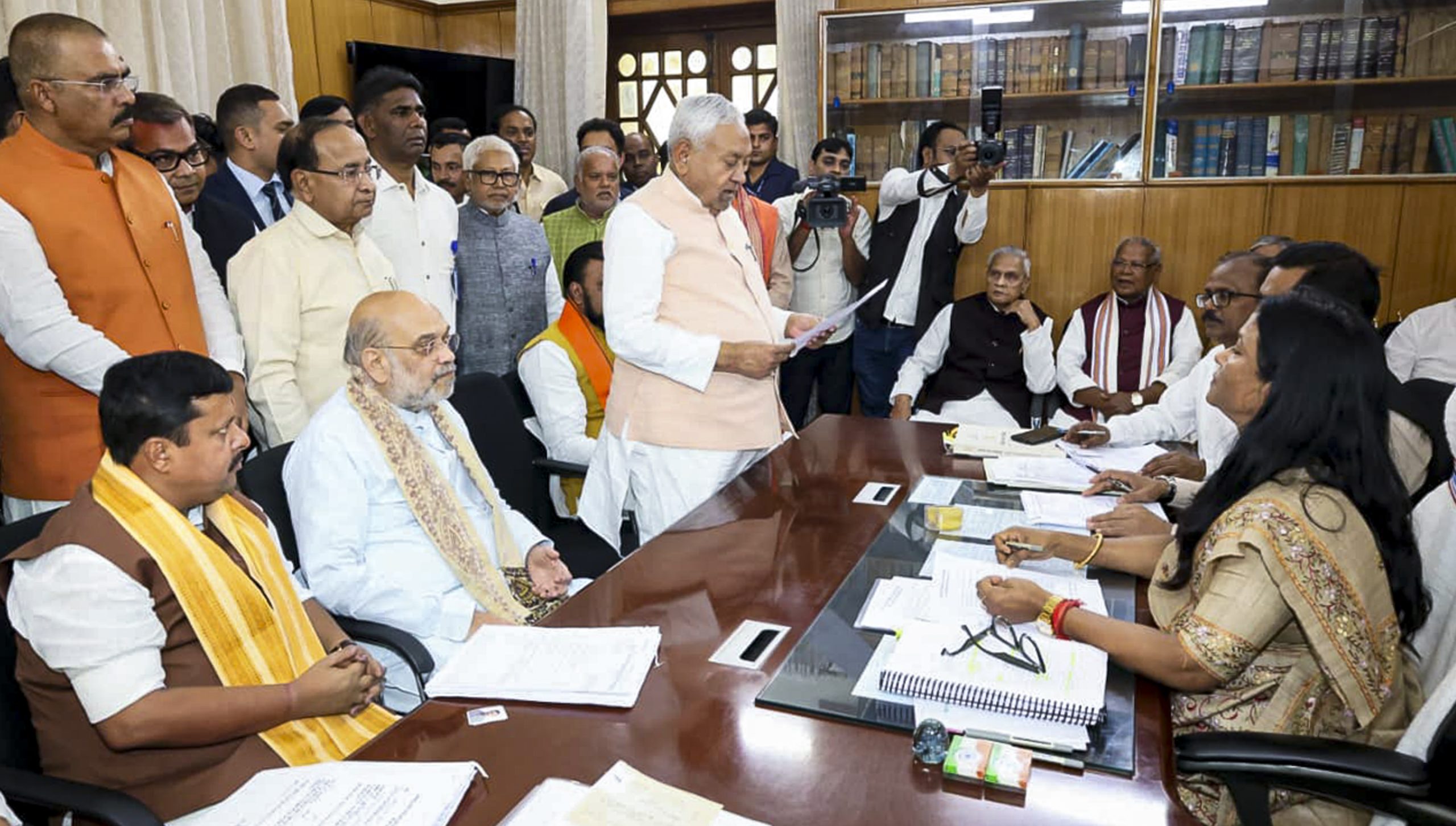 Deputy CMs Samrat Choudhary and Vijay Kumar Sinha were present when the nominations were filed. PTI PKD SOM