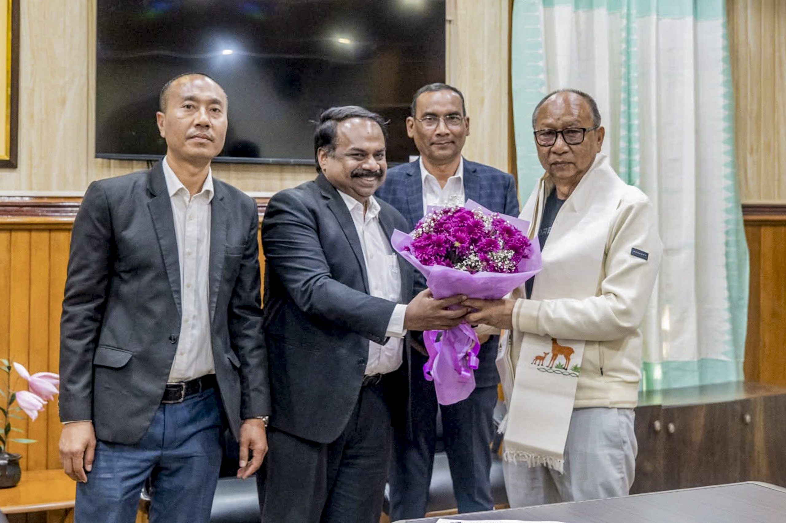 **EDS: THIRD PARTY IMAGE** In this image posted on Feb. 13, 2026, Manipur Chief Minister Yumnam Khemchand Singh meets the ALS Civil Services Coaching team and officials of the Higher Education Department at the Secretariat, in Imphal, Manipur. (PTI Photo)(PTI02_13_2026_000305B)