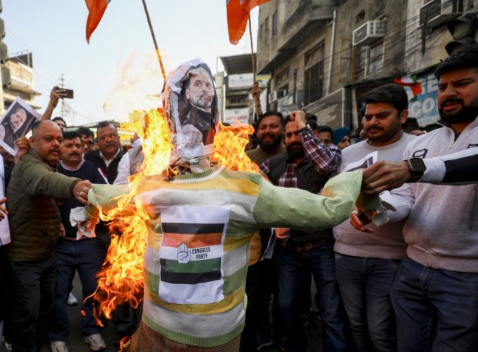 Sultanpur/Kaushambi, Feb 21 (PTI) Workers of the Bharatiya Janata Yuva Morcha (BJYM) on Saturday burnt effigies of Rahul Gandhi in Sultanpur and Kaushambi districts to protest the “shirtless” demonstration staged by Indian Youth Congress members during the AI Impact Summit in Delhi.