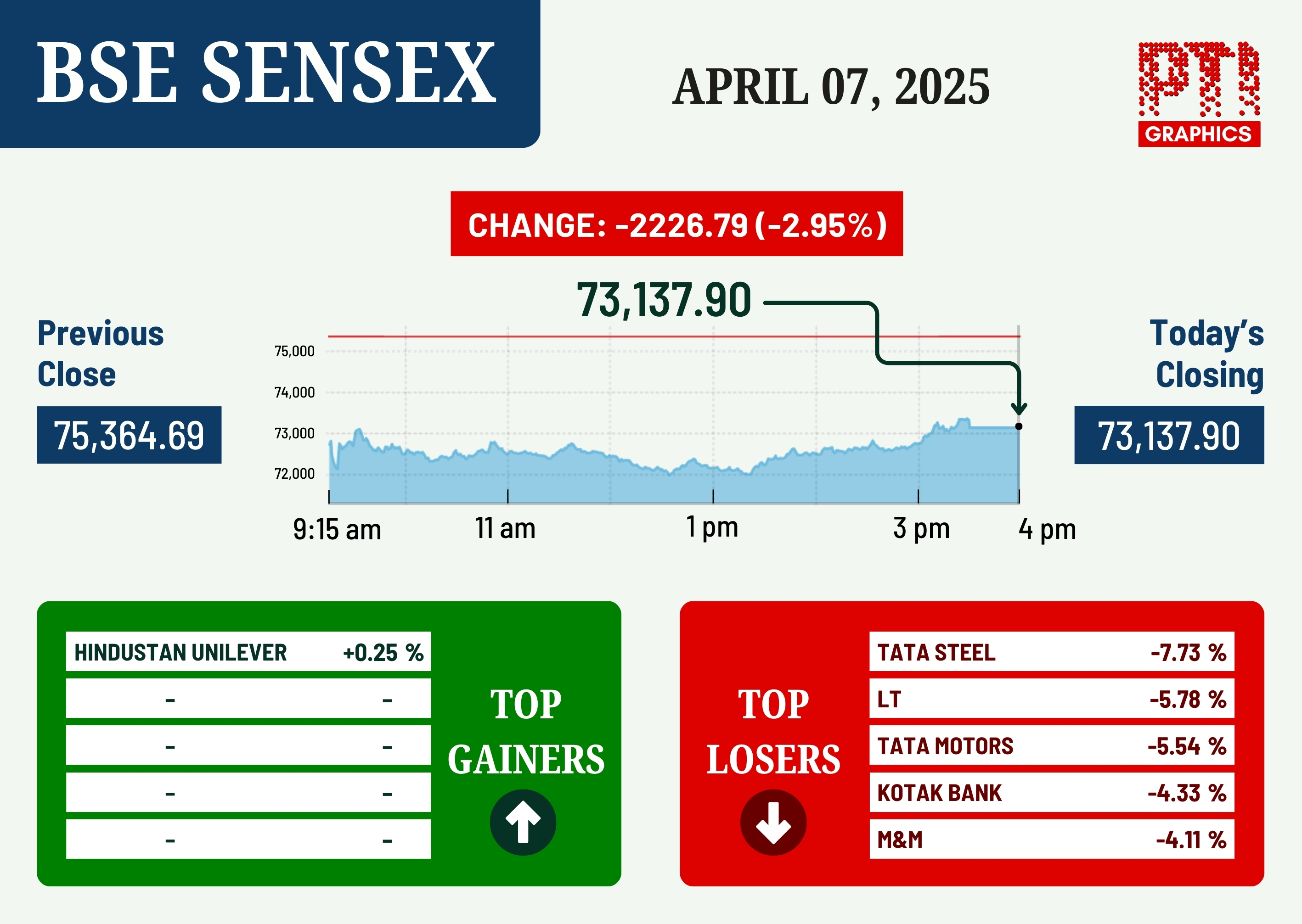 BSE Sensex April 7, 2025 FacebookTwitterPinterestWhatsApp NEW DELHI: BSE SENSEX. PTI GRAPHICS.(PTI04_07_2025_001010002B) BSE Sensex NEW DELHI: BSE SENSEX. PTI GRAPHICS.(PTI04_07_2025_001010002B)