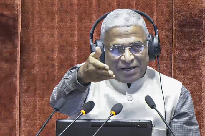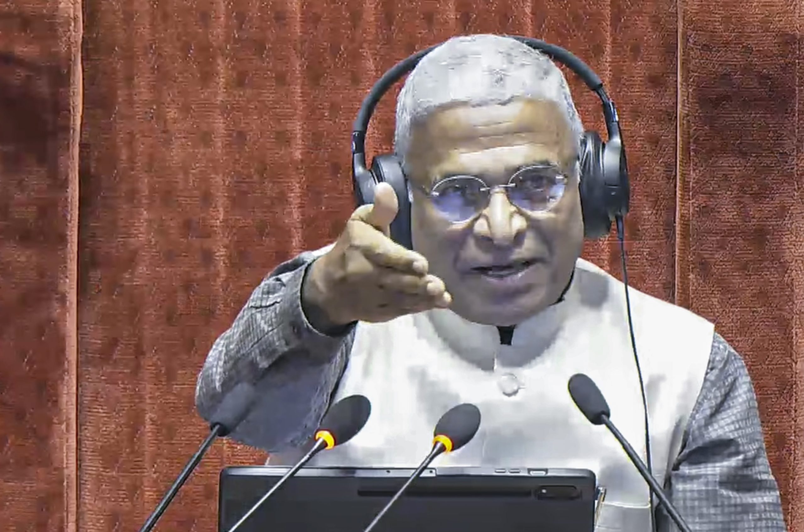 **EDS: THIRD PARTY IMAGE; SCREENGRAB VIA SANSAD TV** New Delhi: Rajya Sabha Deputy Chairman Harivansh Narayan Singh presides over the proceedings during the second part of the Budget session of Parliament, in New Delhi, Monday, March 30, 2026. (Sansad TV via PTI Photo)(PTI03_30_2026_000169B)