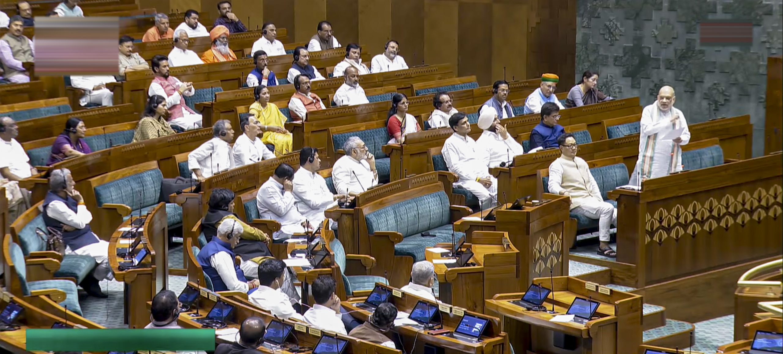**EDS: THIRD PARTY IMAGE; SCREENGRAB VIA SANSAD TV** New Delhi: Union Home Minister Amit Shah speaks in the Lok Sabha during the second part of the Budget session of Parliament, in New Delhi, Monday, March 30, 2026. (Sansad TV via PTI Photo) (PTI03_30_2026_000310B)