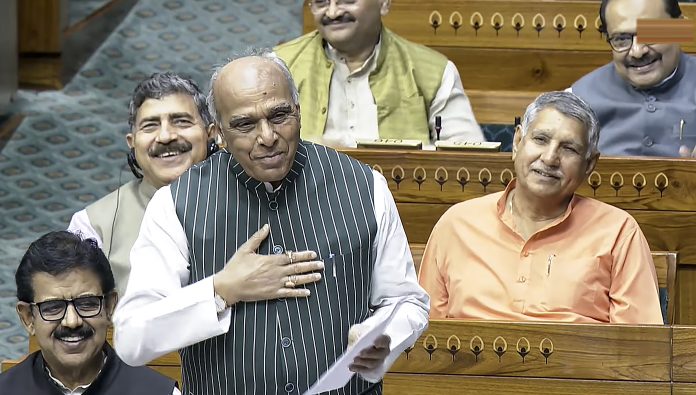 **EDS: THIRD PARTY IMAGE; SCREENGRAB VIA SANSAD TV** New Delhi: BJP MP Jagdambika Pal speaks in the Lok Sabha during the second part of Budget session of Parliament, in New Delhi, Wednesday, April 1, 2026. (Sansad TV via PTI Photo)(PTI04_01_2026_000144B)