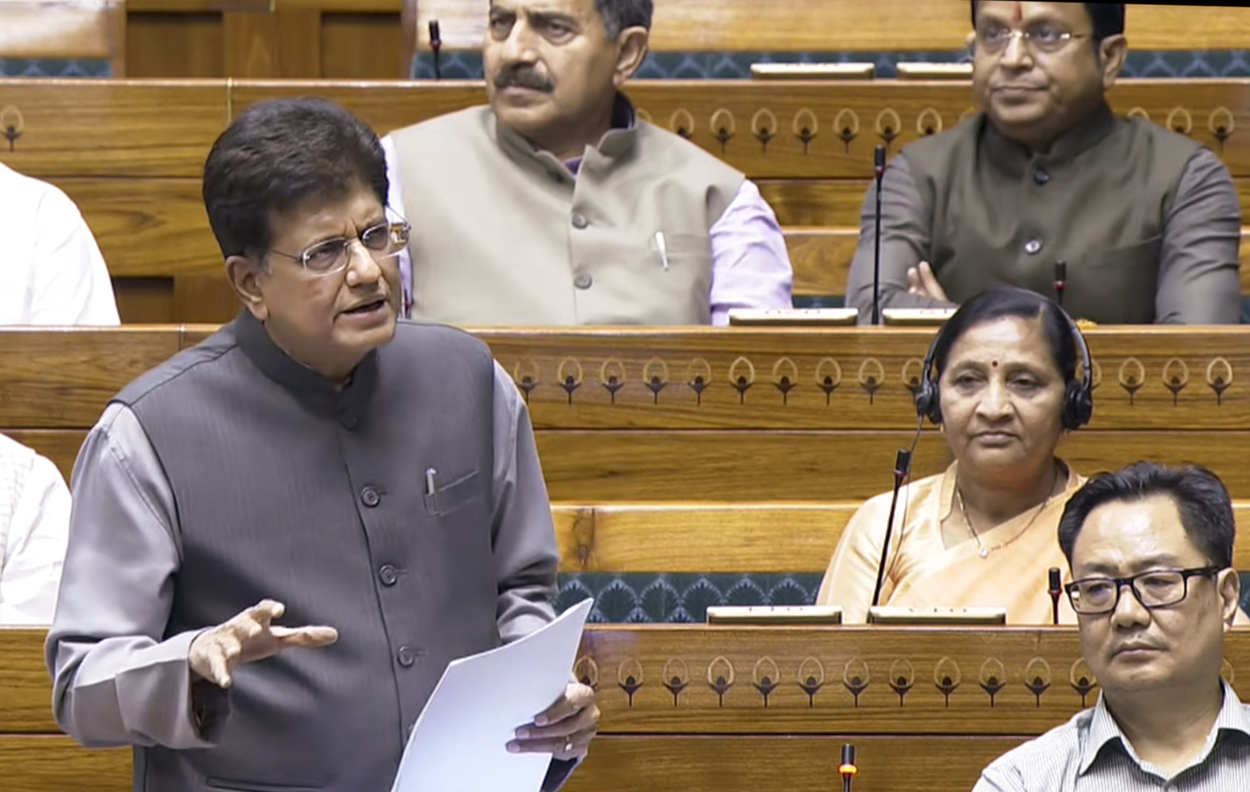 **EDS: THIRD PARTY IMAGE; SCREENGRAB VIA SANSAD TV** New Delhi: Union Minister of Commerce Piyush Goyal speaks in the Lok Sabha during the second part of the Budget session of Parliament, in New Delhi, Wednesday, April 1, 2026. (Sansad TV via PTI Photo)(PTI04_01_2026_000359B)