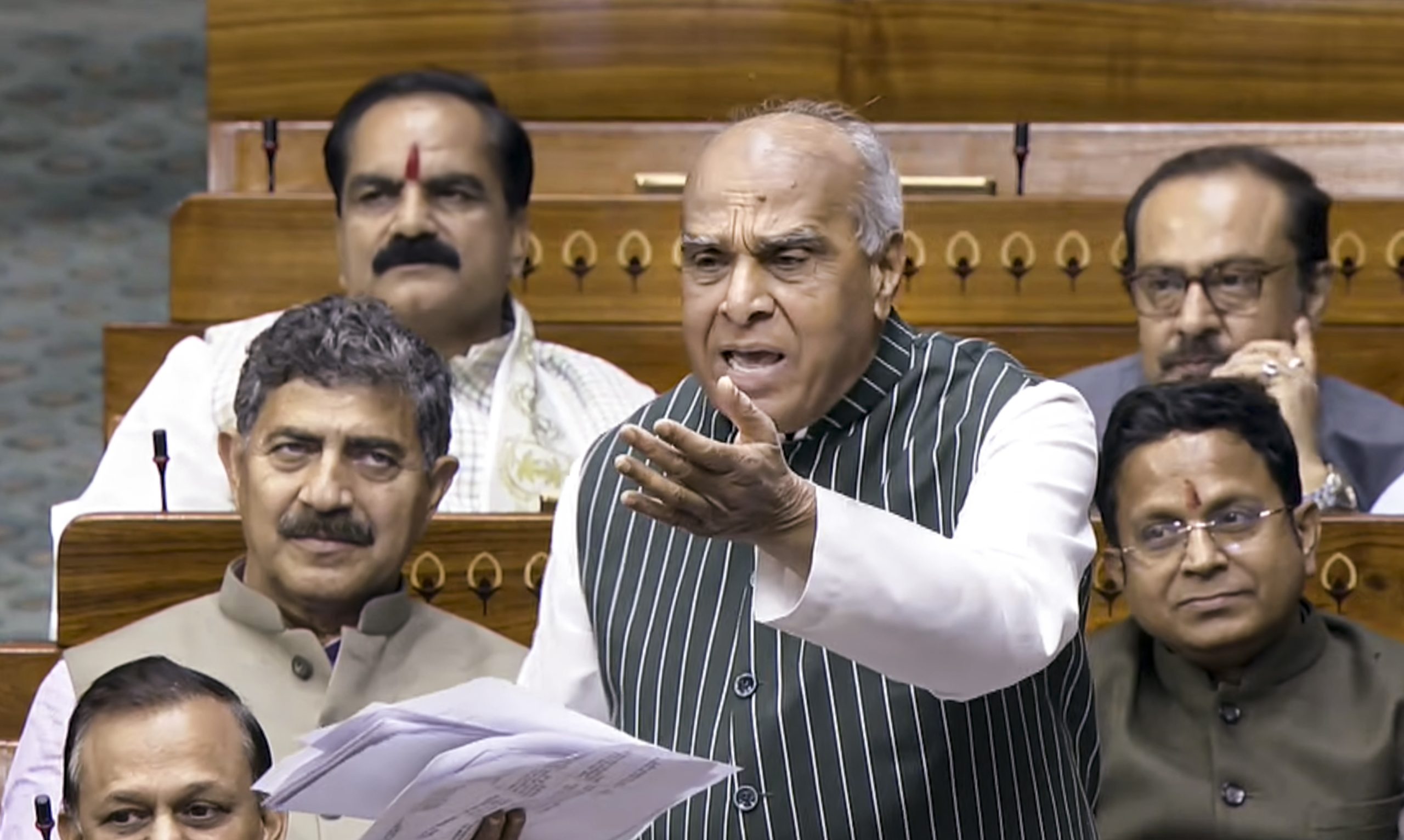 **EDS: THIRD PARTY IMAGE; SCREENGRAB VIA SANSAD TV** New Delhi: BJP MP Jagdambika Pal speaks in the Lok Sabha during the second part of the Budget session of Parliament, in New Delhi, Wednesday, April 1, 2026. (Sansad TV via PTI Photo)(PTI04_01_2026_000360B)