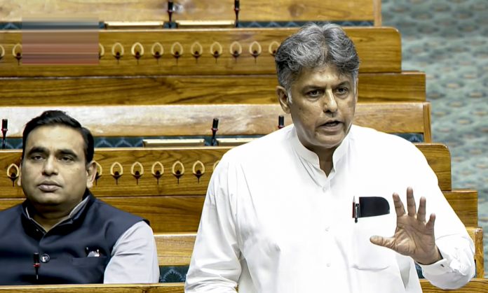 **EDS: THIRD PARTY IMAGE; SCREENGRAB VIA SANSAD TV** New Delhi: Congress MP Manish Tewari speaks in the Lok Sabha during the second part of the Budget session of Parliament, in New Delhi, Thursday, April 2, 2026. (Sansad TV via PTI Photo)(PTI04_02_2026_000036B)