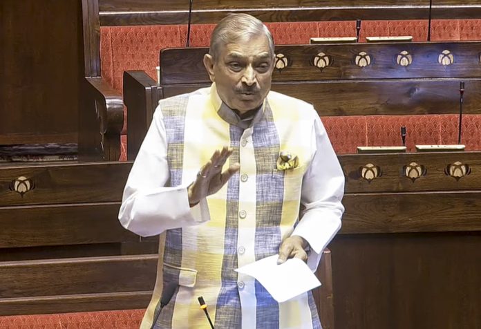 **EDS: THIRD PARTY IMAGE; SCREENGRAB VIA SANSAD TV** New Delhi: Congress MP Pramod Tiwari speaks in the Rajya Sabha during the second part of the Budget session of Parliament, in New Delhi, Thursday, April 2, 2026. (Sansad TV via PTI Photo)(PTI04_02_2026_000065B)