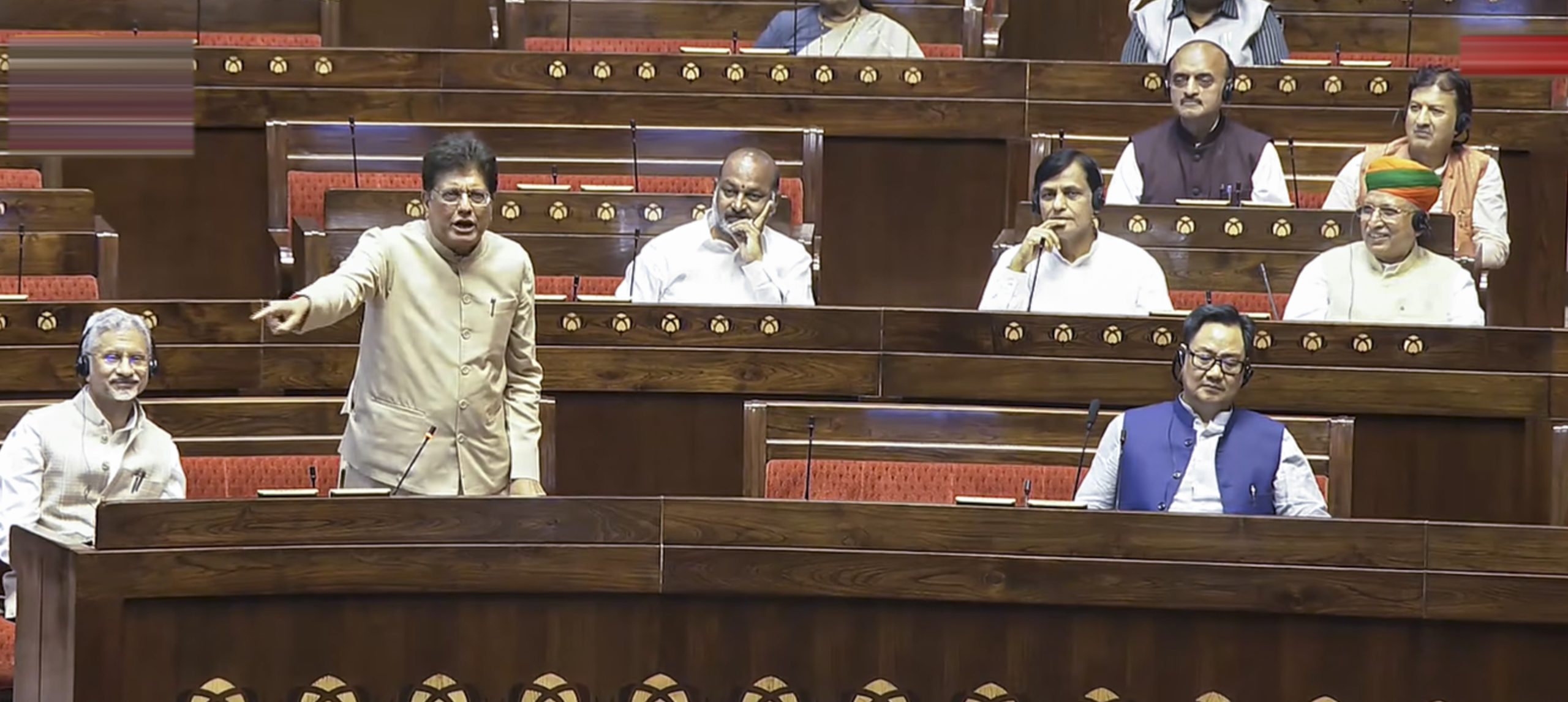 **EDS: THIRD PARTY IMAGE; SCREENGRAB VIA SANSAD TV** New Delhi: Union Minister of Commerce Piyush Goyal speaks in the Rajya Sabha during the second part of the Budget session of Parliament, in New Delhi, Thursday, April 2, 2026. (Sansad TV via PTI Photo)(PTI04_02_2026_000106B)