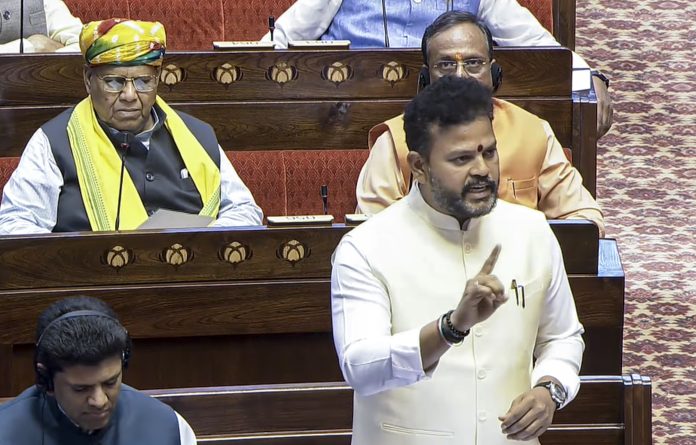 **EDS: THIRD PARTY IMAGE; SCREENGRAB VIA SANSAD TV** New Delhi: Union Civil Aviation Minister Kinjarapu Ram Mohan Naidu speaks in the Rajya Sabha during the second part of the Budget session of Parliament, in New Delhi, Thursday, April 2, 2026. (Sansad TV via PTI Photo)(PTI04_02_2026_000108B)