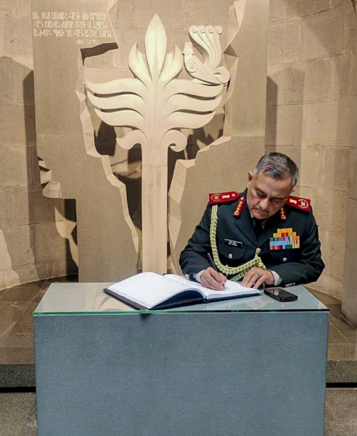 In another post, the HQ IDS wrote, Gen Chauhan laid a wreath at the Armenian Genocide Memorial & Museum in Yerevan, “honouring the memory of 1.5 million Armenians who lost their lives in the genocide”.