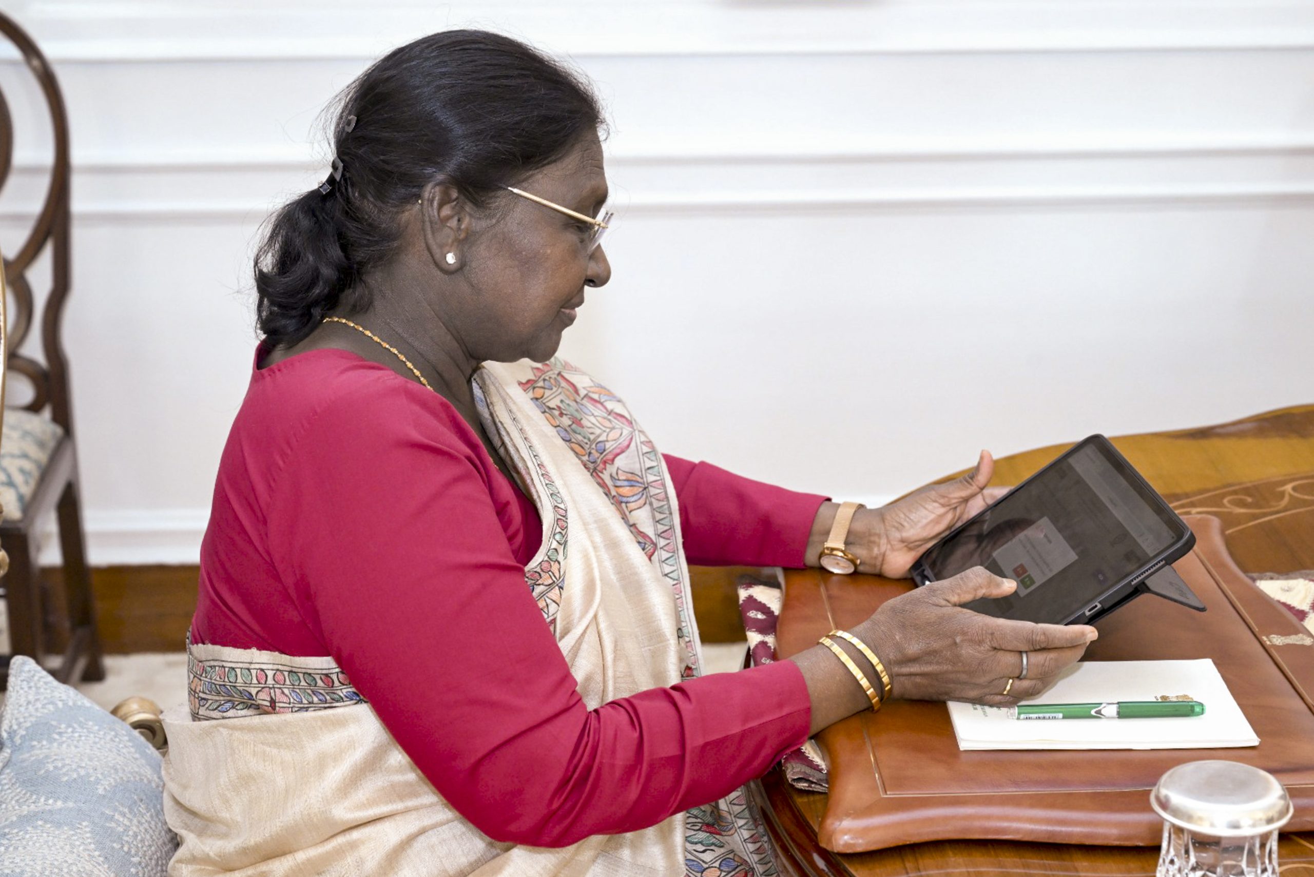 **EDS: THIRD PARTY IMAGE** In this image posted on April 1, 2026, President Droupadi Murmu completes her self-enumeration for Census 2027. (@rashtrapatibhvn/X via PTI Photo) (PTI04_01_2026_000593B)