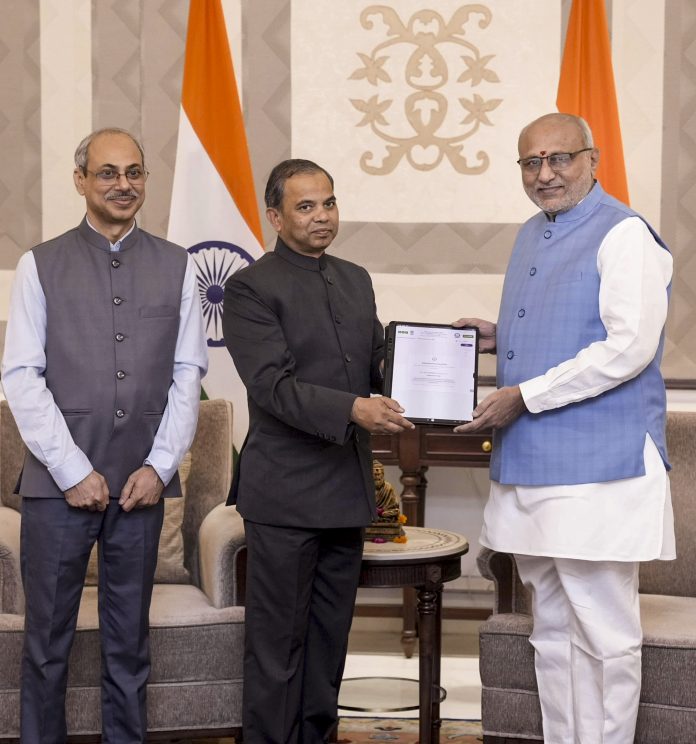 **EDS: THIRD PARTY IMAGE** In this image posted on April 1, 2026, Vice President C. P. Radhakrishnan after completing his self-enumeration for Census 2027. (@VPIndia/X via PTI Photo) (PTI04_02_2026_000003B)