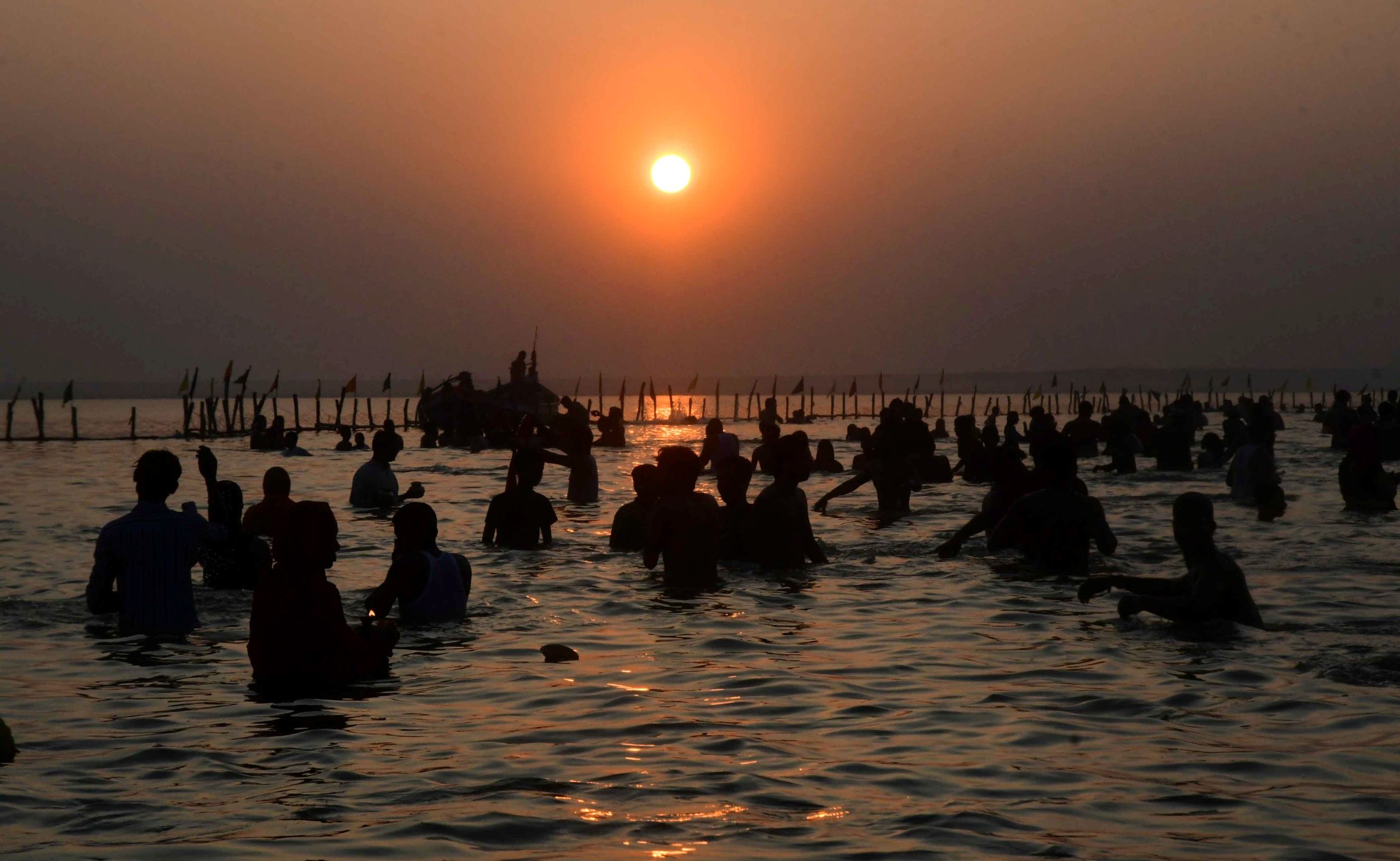 Patna: Devotees take a dip in the Ganga river during sunrise for the �Chaiti Chhath� festival, in Patna, Wednesday, March 25, 2026. (PTI Photo) (PTI03_25_2026_000031B)