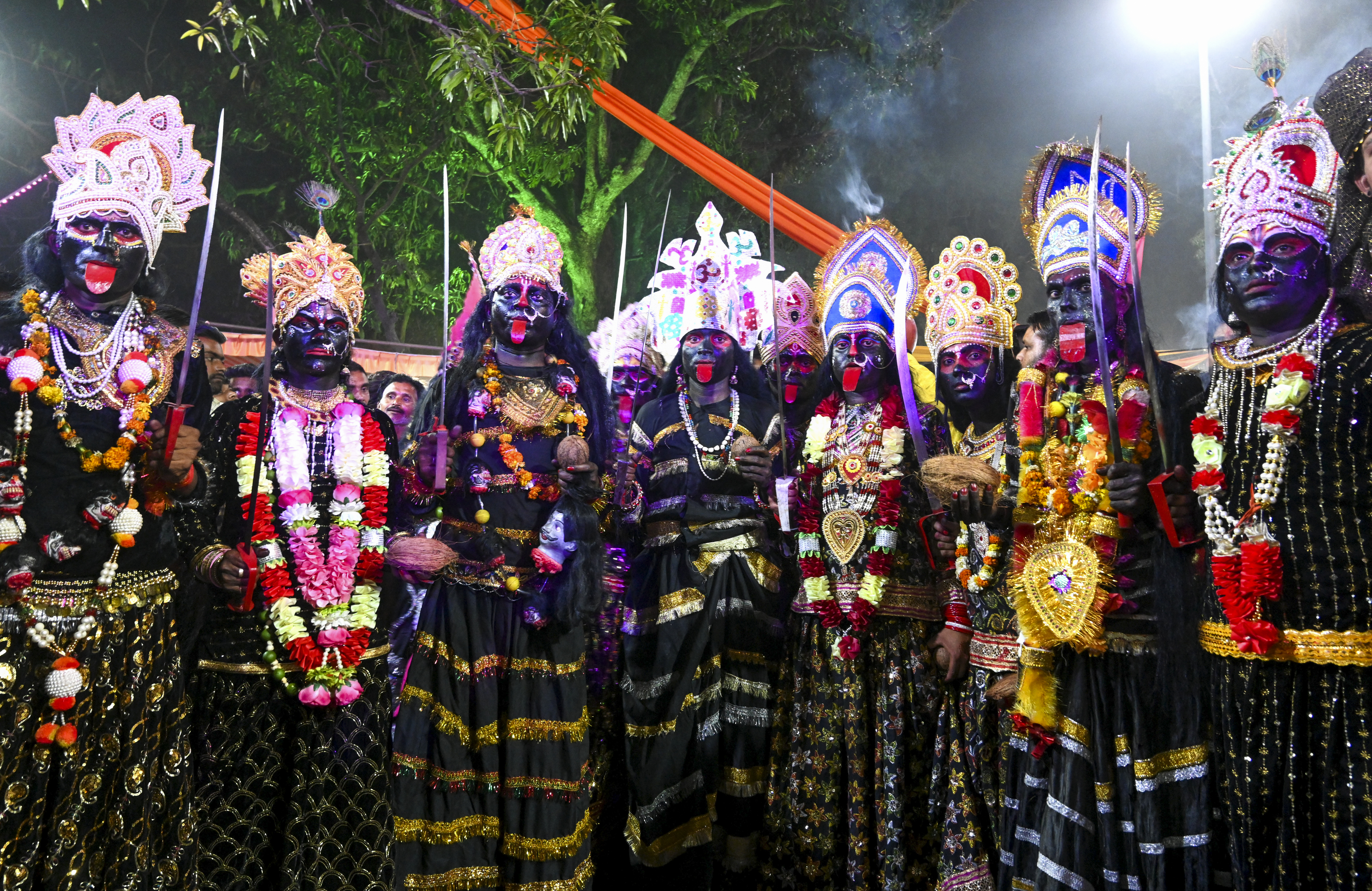 Jabalpur: Devotees dressed as Goddess Kali take part in the Chaitra Navratri procession at Chandika Mata Temple, near Jabalpur, Madhya Pradesh, Monday, April 7, 2025. (PTI Photo)(PTI04_07_2025_000436B)