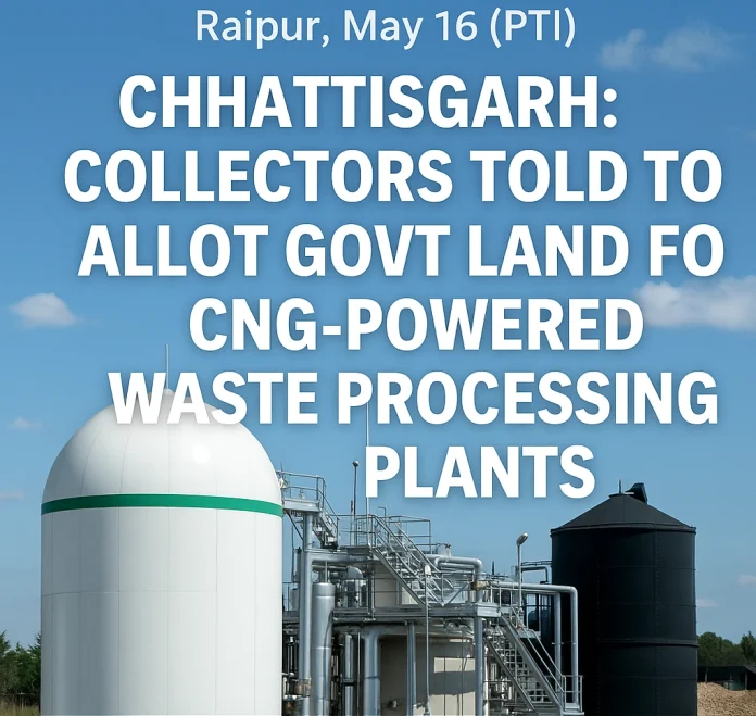 Raipur, May 16 (PTI) The Chhattisgarh government has asked district collectors to allot land at concessional rates to public sector undertakings and state-run oil and gas marketing companies to set up CNG-fuelled waste processing plants in urban bodies, an official said on Friday.