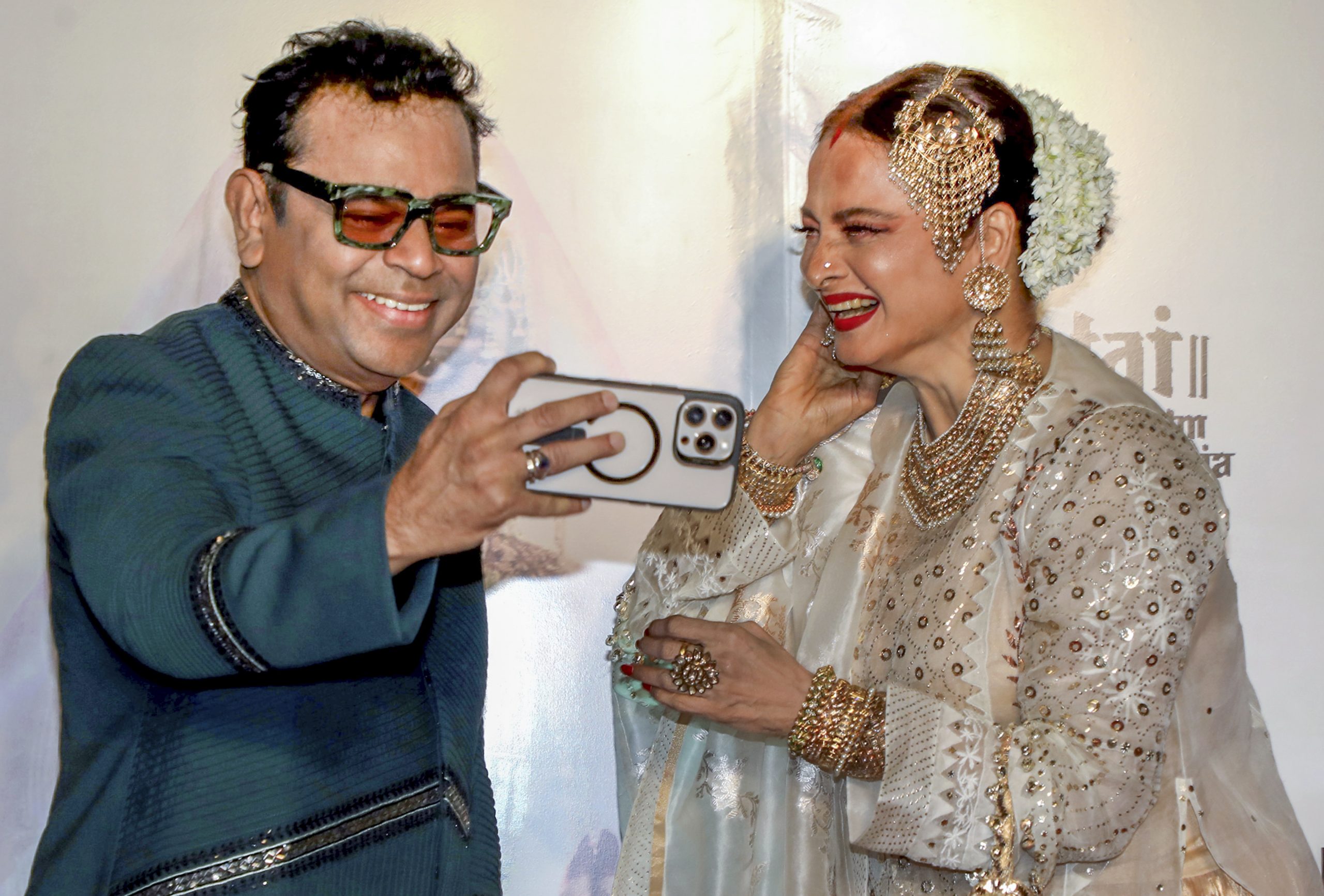 Among the many delightful moments of the evening, Rekha’s warm interaction with music maestro A. R. Rahman stood out. The pair paused on the red carpet for a candid selfie that captured their radiant smiles—an image that quickly took the internet by storm.