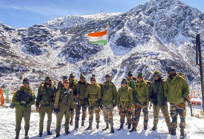 **EDS: THIRD PARTY IMAGE** In this handout image on Wednesday, April 16, 2025, Army personnel pose after successful conclusion of ARMEX-24, a high-altitude adventure expedition. It took participants on a journey from the dense jungles of North Bengal to the treacherous, snow-clad heights of Sikkim, covering a total of 146 kilometres. (PTI Photo) (PTI04_16_2025_000031B)
