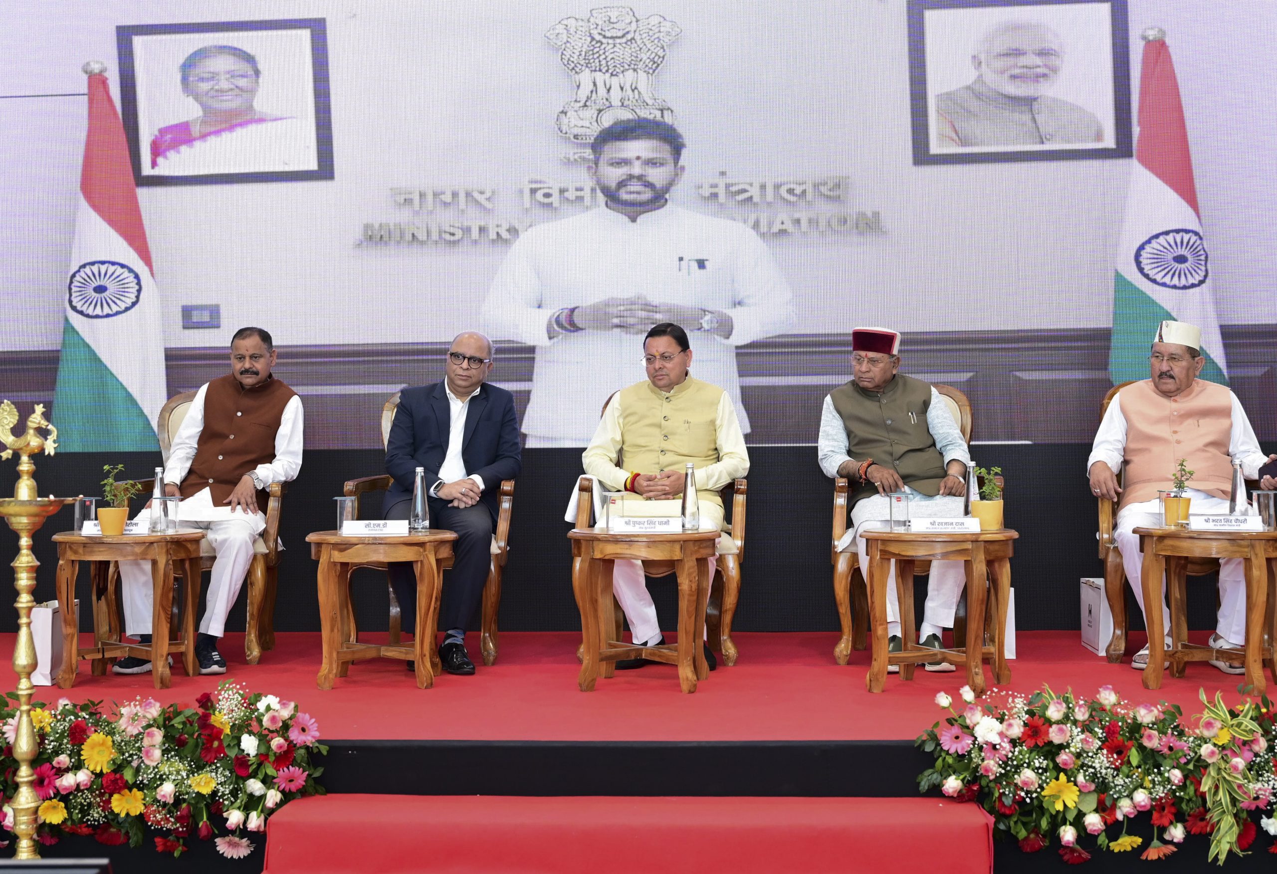 Dehradun: Uttarakhand Chief Minister Pushkar Singh Dhami during the inaugural ceremony of the Dehradun-Pithoragarh flight service (42-seater) from Jolly Grant Airport, in Dehradun, Thursday, March 26, 2026. (PTI Photo) (PTI03_26_2026_000206B)