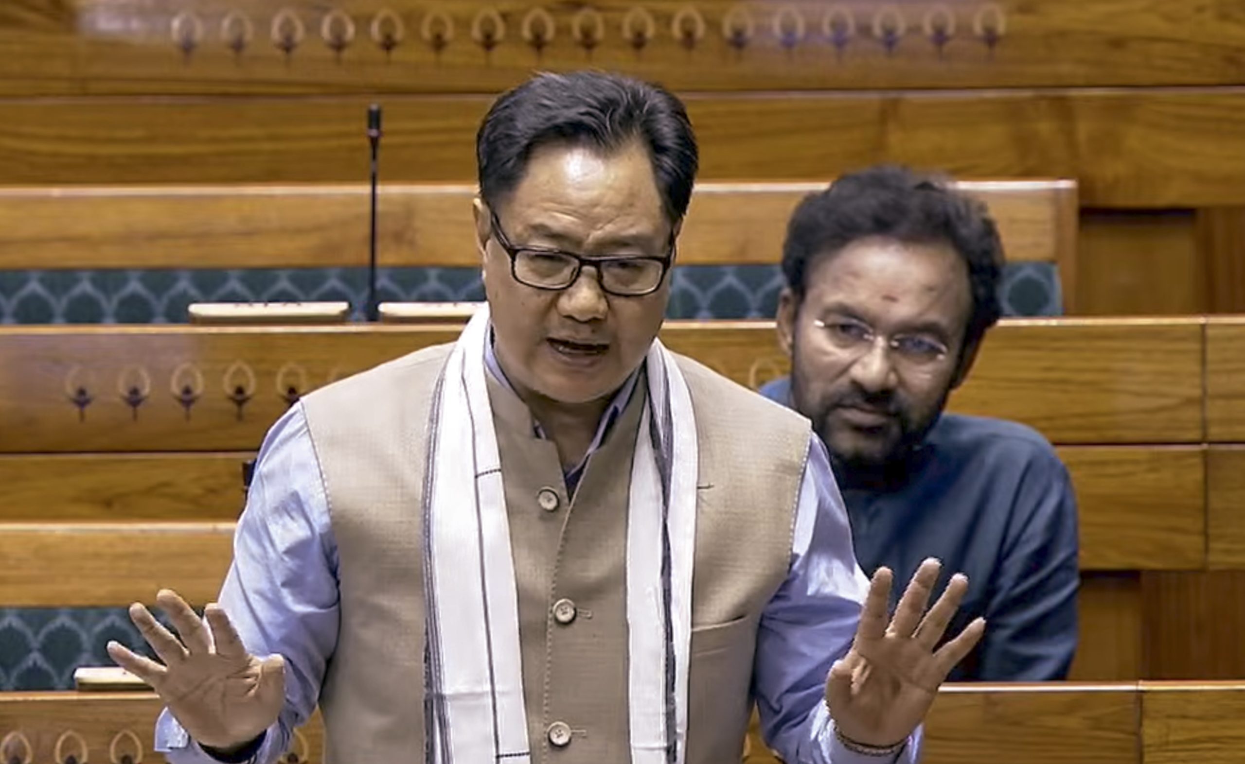 **EDS: THIRD PARTY IMAGE; SCREENGRAB VIA SANSAD TV** New Delhi: Union Minister of Parliamentary Affairs Kiren Rijiju speaks in Lok Sabha during the second part of Budget session of Parliament, in New Delhi, Wednesday, March 11, 2026. (Sansad TV via PTI Photo)(PTI03_11_2026_000145B)