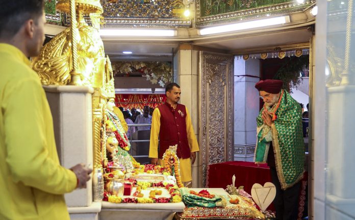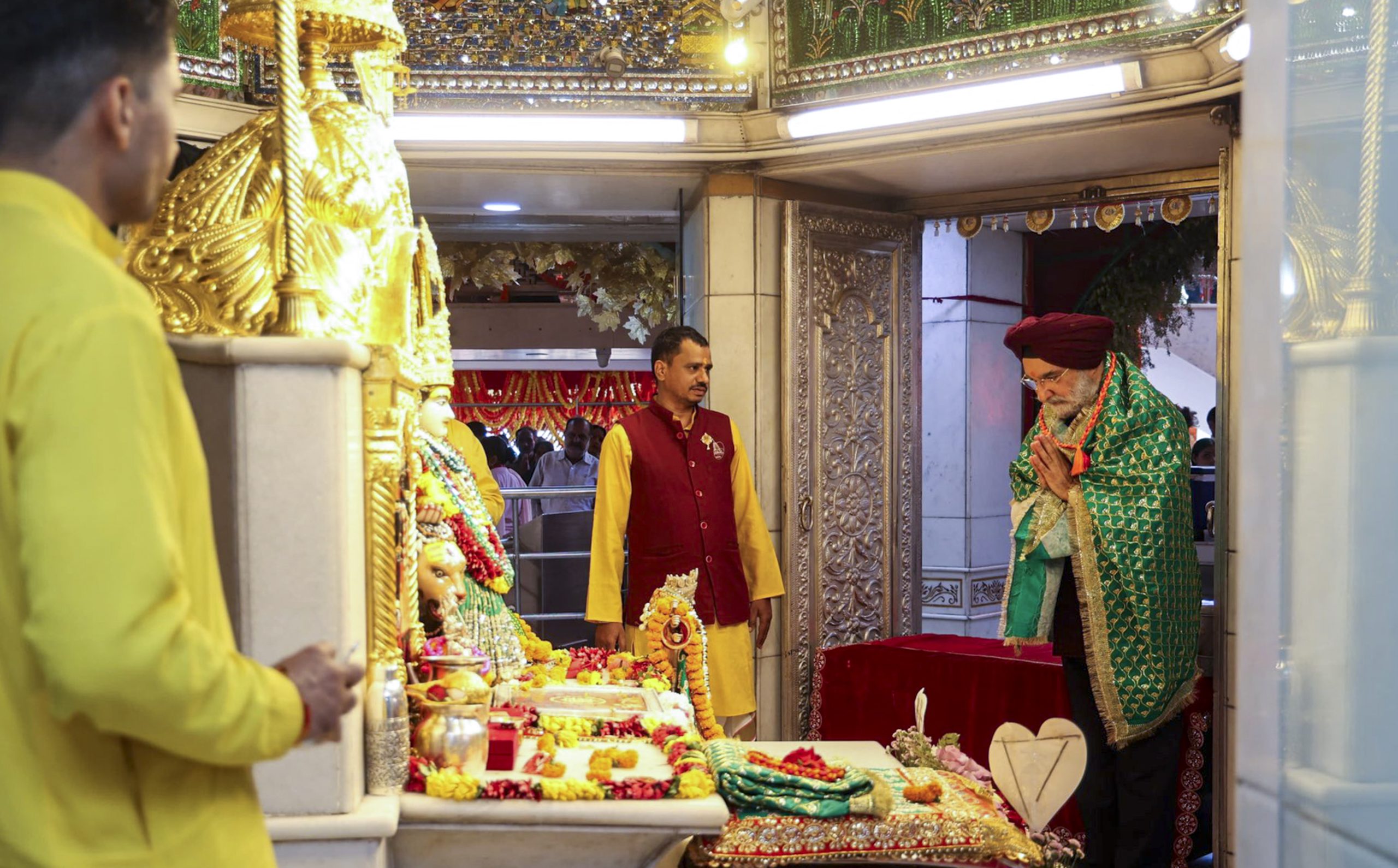 **EDS: THIRD PARTY IMAGE** In this image posted on March 25, 2026, Delhi LG Taranjit Singh Sandhu, right, offers prayers at the Jhandewalan Temple amid the ongoing �Chaitra Navratri� festival, in New Delhi. (@LtGovDelhi/X via PTI Photo) (PTI03_25_2026_000291B)
