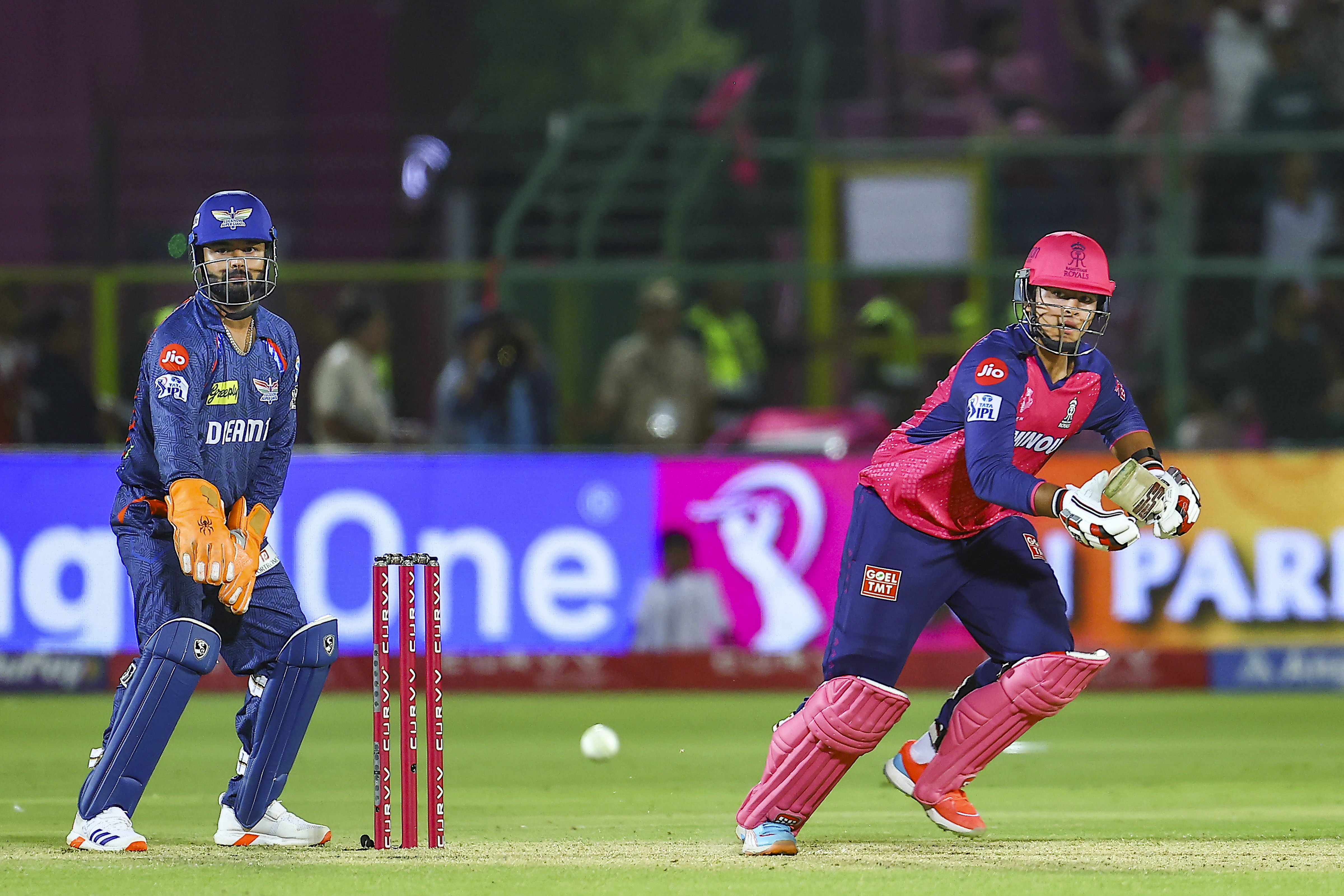 Jaipur: Rajasthan Royals' Vaibhav Suryavanshi plays a shot during the Indian Premier League (IPL) 2025 T20 cricket match between Rajasthan Royals and Lucknow Super Giants at Sawai Mansingh Stadium in Jaipur, Saturday, April 19, 2025. (PTI Photo) (PTI04_19_2025_000589B)