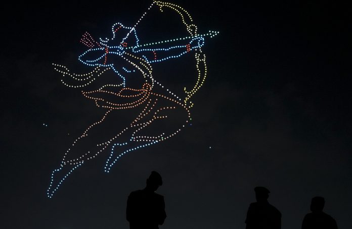 Mumbai: An illuminated view from the drone show organised by the Maharashtra’s Tourism and Cultural Affairs Department, in Mumbai, Thursday, March 26, 2026. (PTI Photo/Shashank Parade) (PTI03_26_2026_000426B)