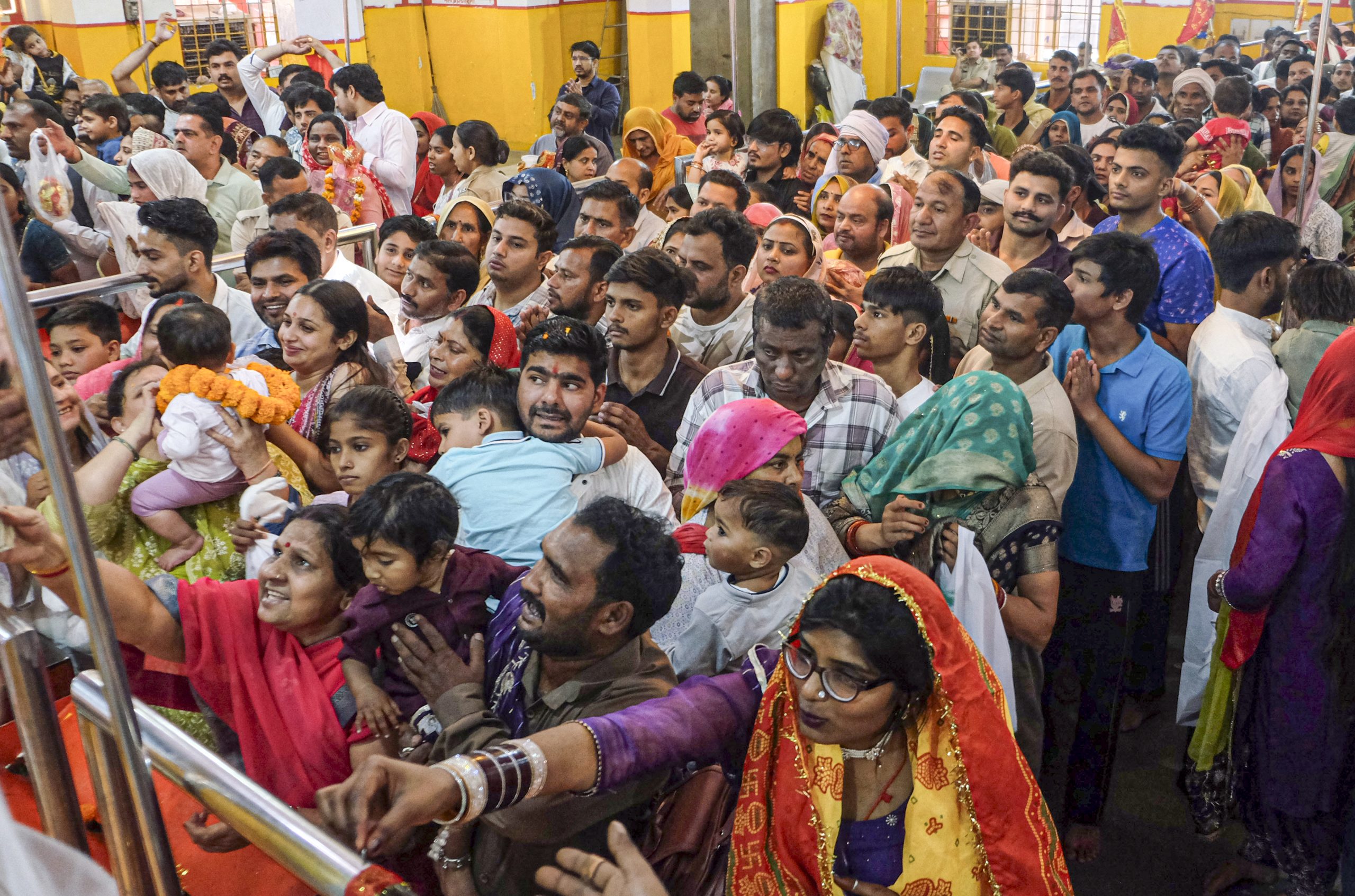 Gurugram: People gather at the ‘Sheetla Mata Temple’ to offer prayers on the occassion of ‘Durga Ashtami’, in Gurugram, Haryana, Thursday, March 26, 2026. (PTI Photo)(PTI03_26_2026_000225B)
