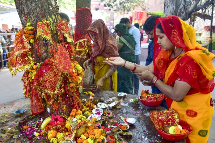 Prayagraj: People perform rituals at the ‘Alopi Shankari Devi Shakti Peeth Mandir’ on the occasion of ‘Durga Ashtami’ festival, in Prayagraj, Uttar Pradesh, Thursday, March 26, 2026. (PTI Photo)(PTI03_26_2026_000051B)