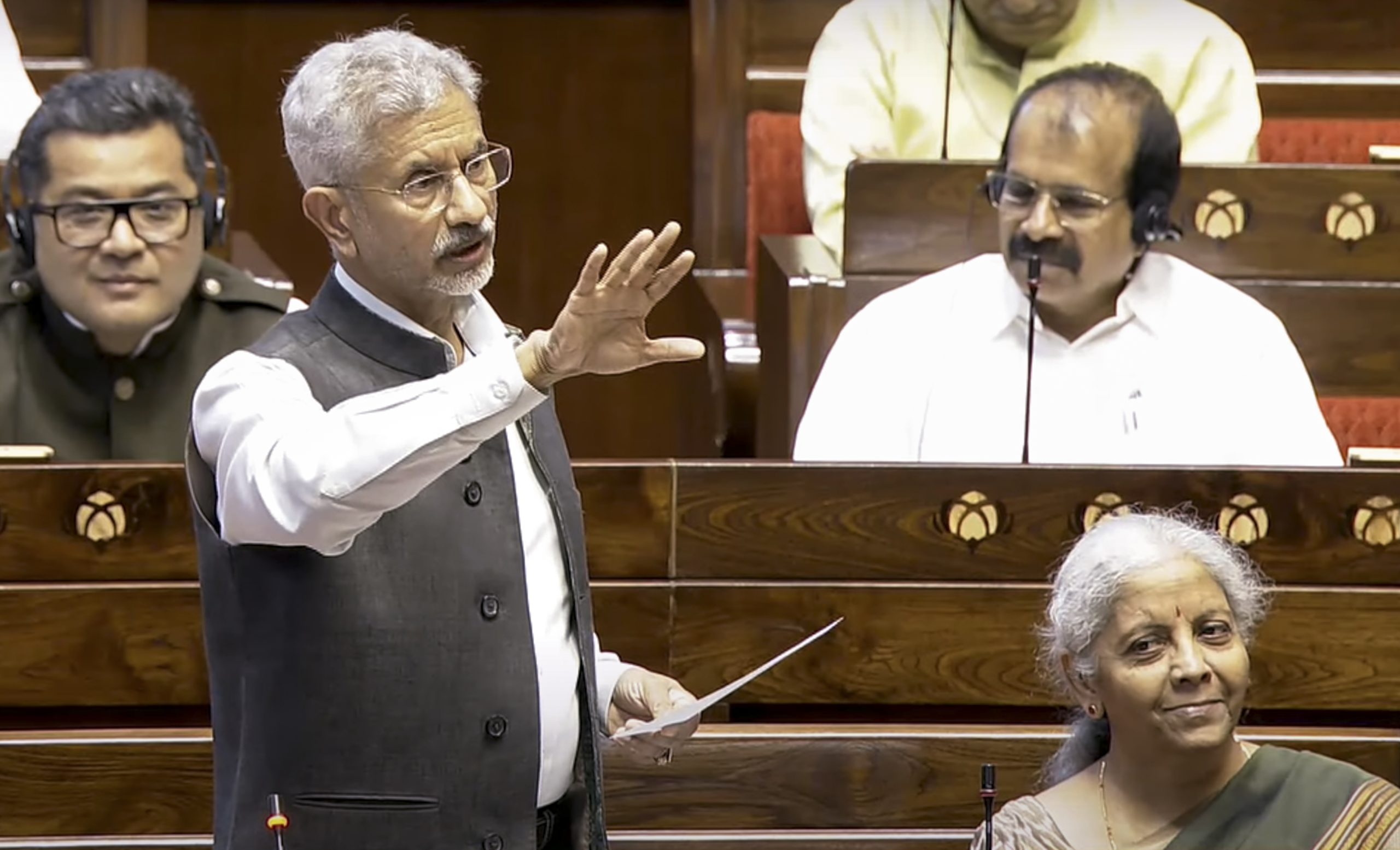 **EDS: THIRD PARTY IMAGE, SCREENGRAB VIA SANSAD TV** New Delhi: Union External Affairs Minister S Jaishankar speaks in the Rajya Sabha during the Monsoon session of Parliament, in New Delhi, Wednesday, July 30, 2025. Union Finance Minister Nirmala Sitharaman is also seen. (Sansad TV via PTI Photo) (PTI07_30_2025_000121B)