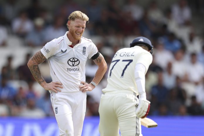 England captain Ben Stokes, left, reacts after bowling a delivery to India's captain Shubman Gill, right, on day one of the first cricket test match between England and India at Headingley in Leeds, England, Friday, June 20, 2025, AP/PTI(AP06_20_2025_000360B)