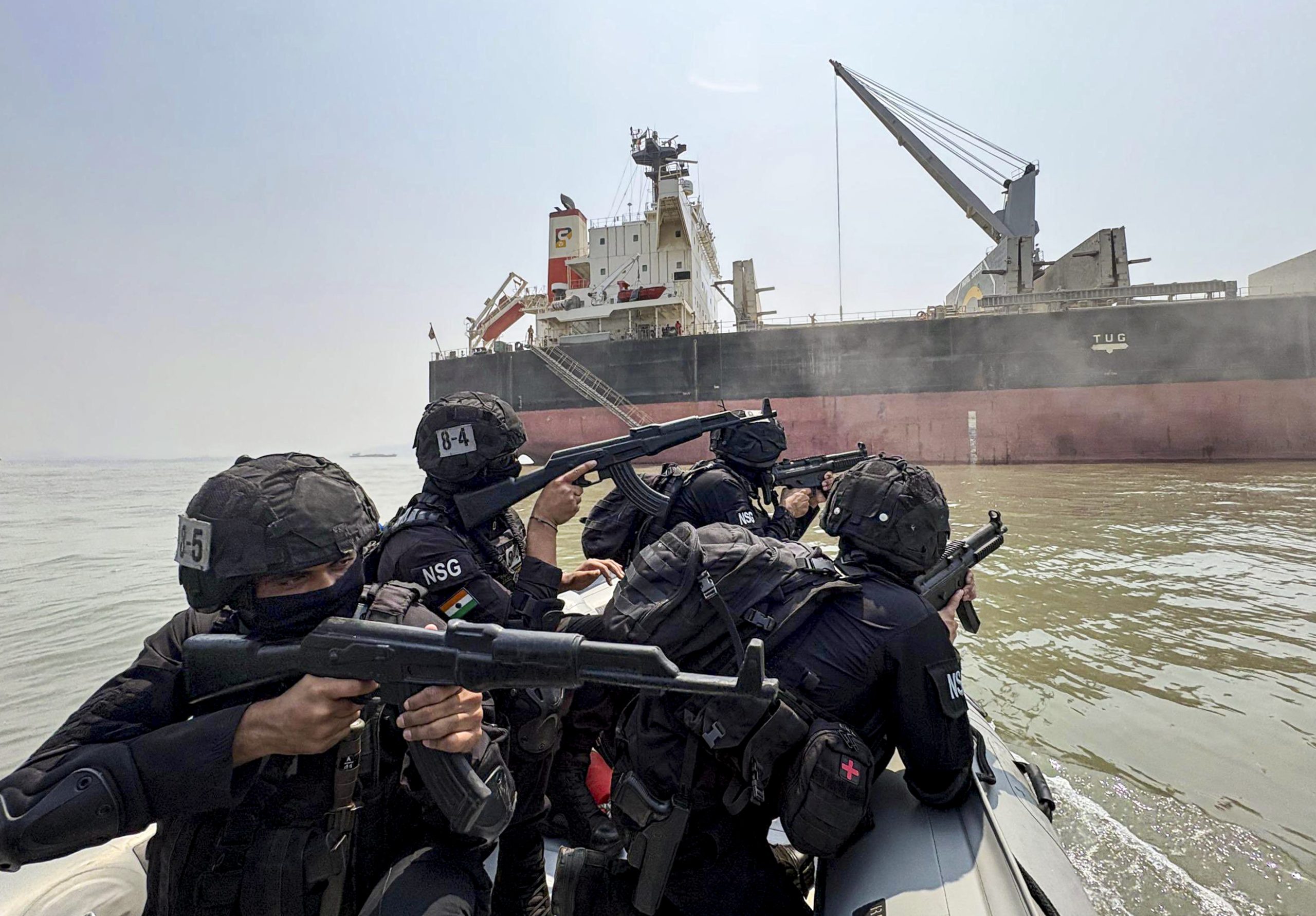 **EDS: THIRD PARTY IMAGE** In this image posted on March 26, 2026, National Security Guard personnel take part in Coastal Security Exercise Sagar Kavach off the Maharashtra coast. (@IndiaCoastGuard/X via PTI Photo) (PTI03_26_2026_000304B)