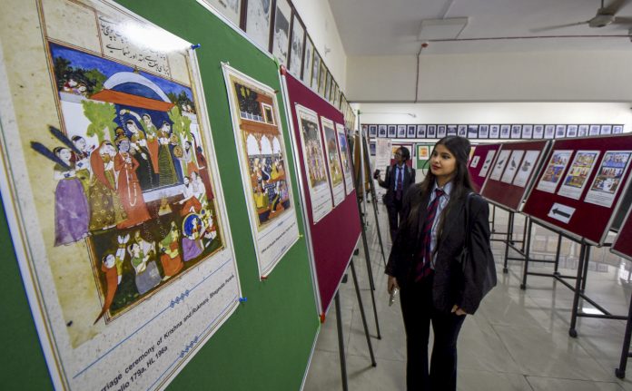 **EDS: TO GO WITH STORY** Patna: A visitor looks at a panel at an exhibition hosted at the Bihar State Archives, as part of the Centre’s Gyan Bharatam initiative, in Patna, Monday, March 30, 2026. (PTI Photo) (PTI03_30_2026_000257B)