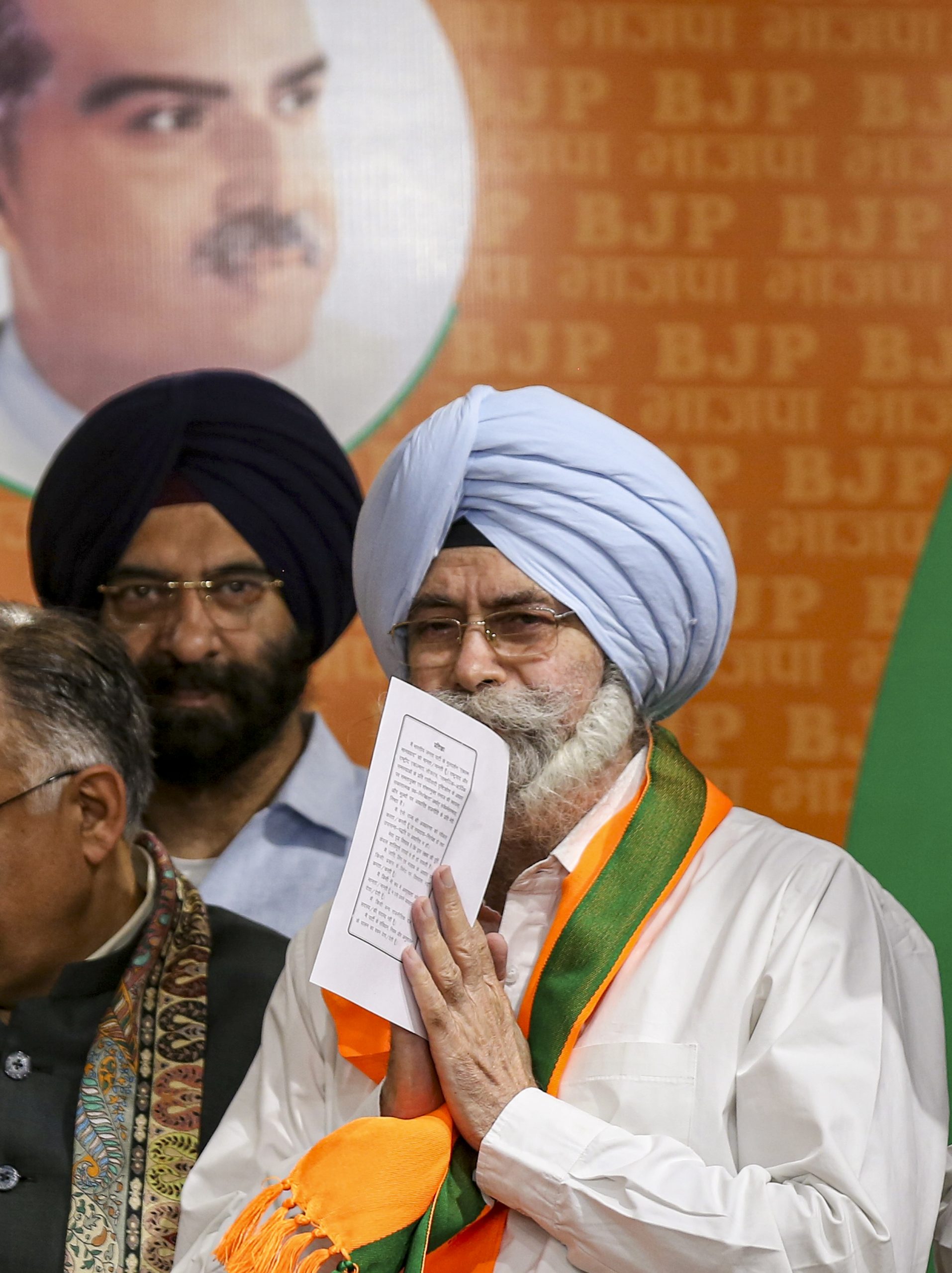 New Delhi: Senior Supreme Court advocate and former AAP leader HS Phoolka greets after joining the BJP, at party headquarters, in New Delhi, Wednesday, April 1, 2026. (PTI Photo)(PTI04_01_2026_000181B)