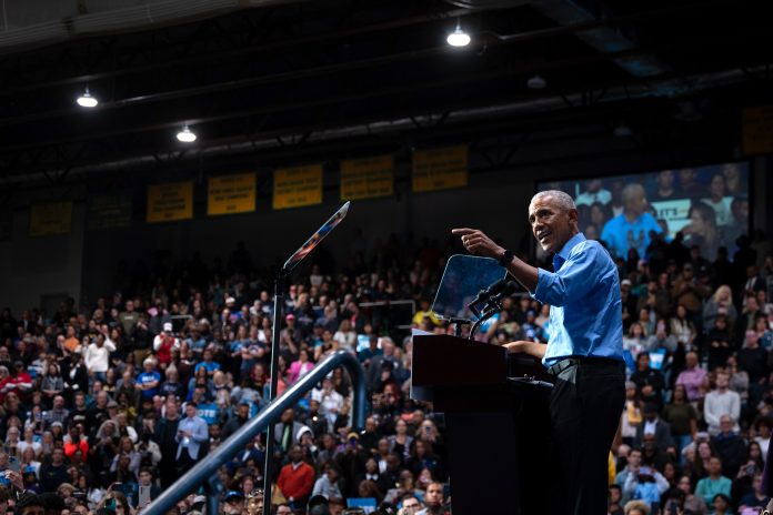 Former President Barack Obama speaks at a rally for New Jersey Democratic gubernatorial candidate Mikie Sherrill, Saturday, Nov. 1, 2025, in Newark, N.J.AP/PTI(AP11_02_2025_000014B)