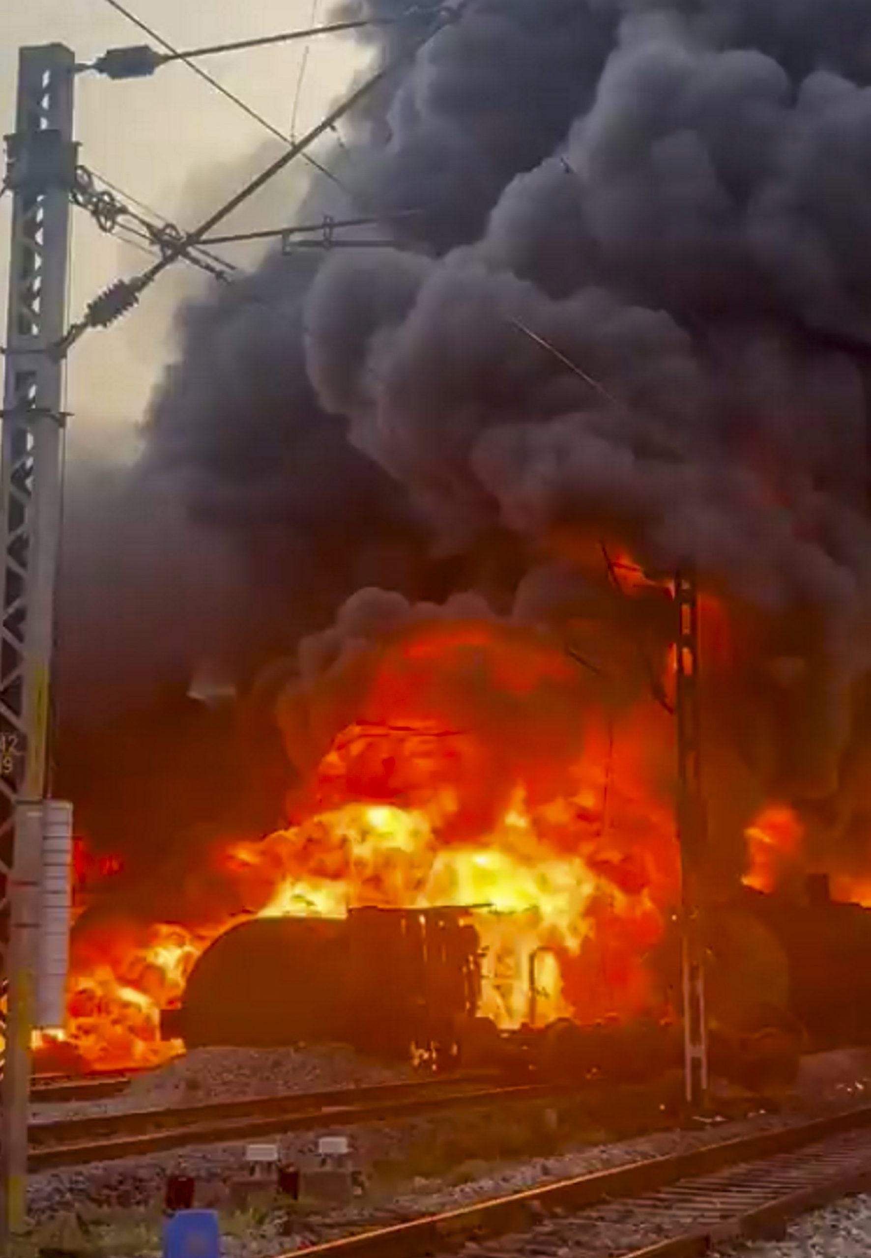 According to the Southern Railway’s official release, few intermediate wagons of the goods train, carrying diesel caught fire while exiting Tiruvallur railway station at around 5.30 hours and many other wagons (3rd from engine onwards) also derailed and 18 wagons were gutted.
