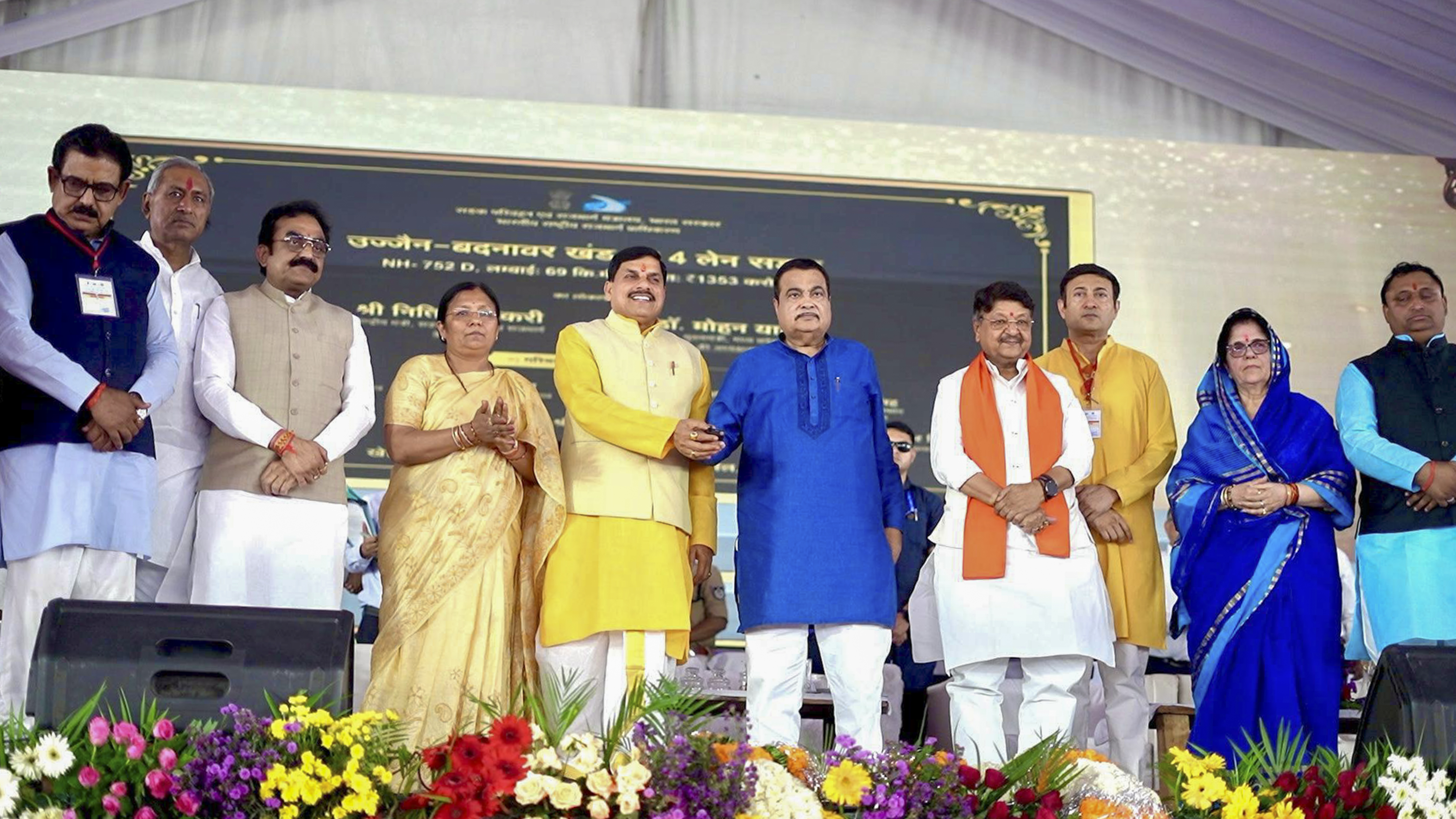 **EDS: THIRD PARTY IMAGE** In this image released by @nitin_gadkari via X on Thursday, April 10, 2025, Union Minister for Road Transport and Highways Nitin Gadkari with Madhya Pradesh Chief Minister Mohan Yadav at a programme at Badnawar in Dhar district. (@nitin_gadkari via PTI Photo) (PTI04_10_2025_000171B)