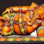 Ganesha was created by Parvati, the wife of Lord Shiva from the sandalwood paste that she used for bathing; she then breathed life into it and decided to make him her escort. She told him to guard the door as she took a bath. Lord Shiva and Ganesh were unknown to each other, so on his return when Shiva was not allowed to enter by Ganesha, there was a great combat between them and in the end, Shiva severed Ganesha’s head. When Parvati saw Ganesha’s head chopped off, she became very angry. Shiva promised her that her son would live again. The search for a dead person facing North began; but only the head of a dead elephant could be found. So, Lord Shiva fixed the elephant’s head on the child’s body and brought him back to life. He then named the boy ‘Ganesha’ – Lord of Ganas.