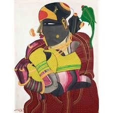 Lot no. 20 is a watercolour, pen & ink on paper work by Jayasri Burman, titled ‘Nirmala’. The artist draws from her deeply rooted vocabulary of mythology, femininity, and nature. The mythological figure evokes a sense of harmony between a human, spirit, and the natural world. This lot is estimated to be acquired at INR 4,00,000 – 6,00,000.