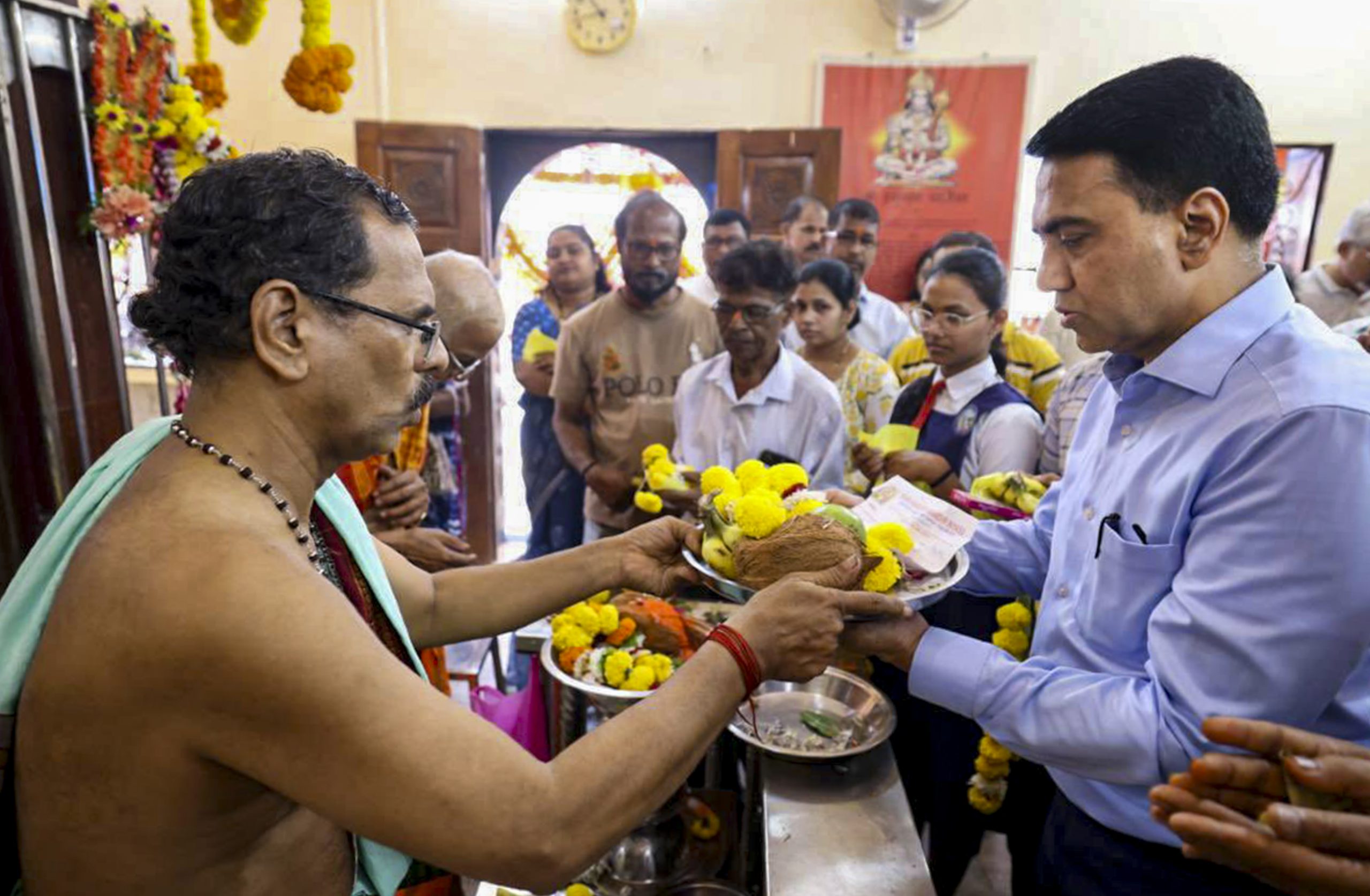 **EDS: THIRD PARTY IMAGE; SPECIAL PACKAGE** In this image received on April 2, 2026, Goa Chief Minister Pramod Sawant during a visit to Shri Hanuman Temple in Sankhali. (Handout via PTI Photo)(PTI04_02_2026_000230B)