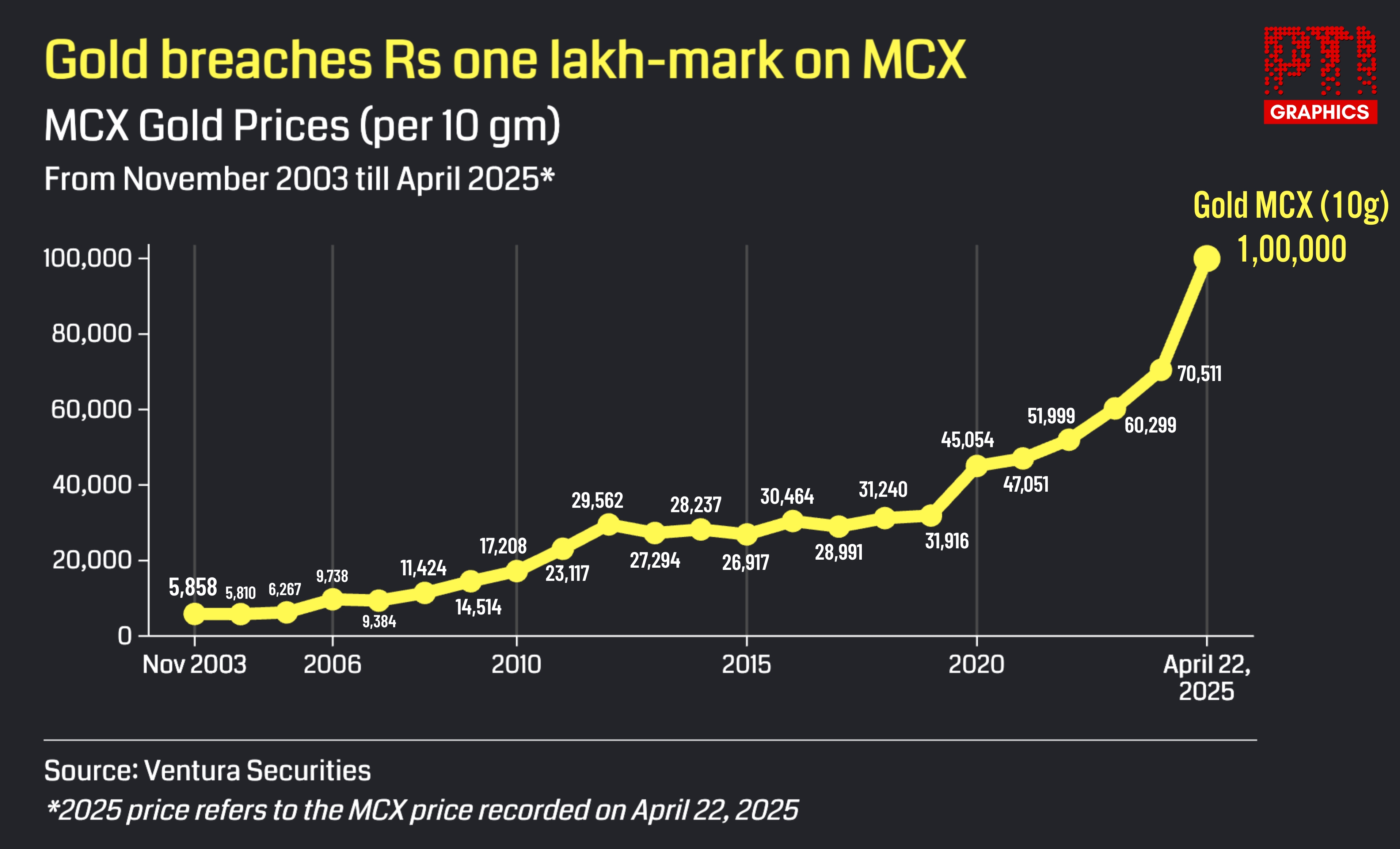 “Gold prices witnessed sharp weakness. This marks a steep sell-off since April 3, signalling a possible short-term reversal from recent peaks,” Jateen Trivedi, VP Research Analyst of Commodity and Currency at LKP Securities, said.