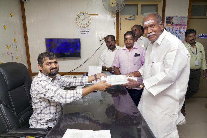 Puducherry: Puducherry Chief Minister and All India N.R. Congress leader Rangasamy filed nomination papers for state Assembly elections from two constituencies, Thattanchavady and Mangalam, in Puducherry, Friday, March 20, 2026. (PTI Photo) (PTI03_20_2026_000334B)