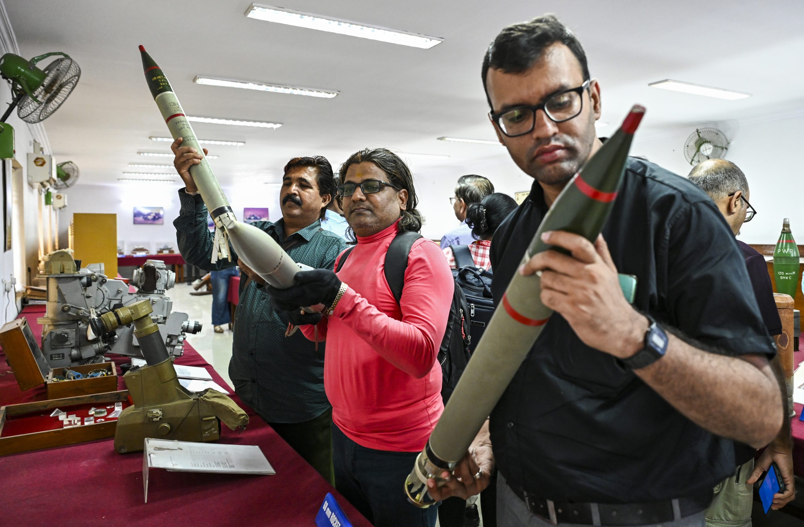 Nagpur: Visitors take a look at shells, a form of ammunition, at the museum of National Academy of Defence Production (NADP), in Nagpur, Maharashtra, Tuesday, June 10, 2025. (PTI Photo) (PTI06_10_2025_000284B)