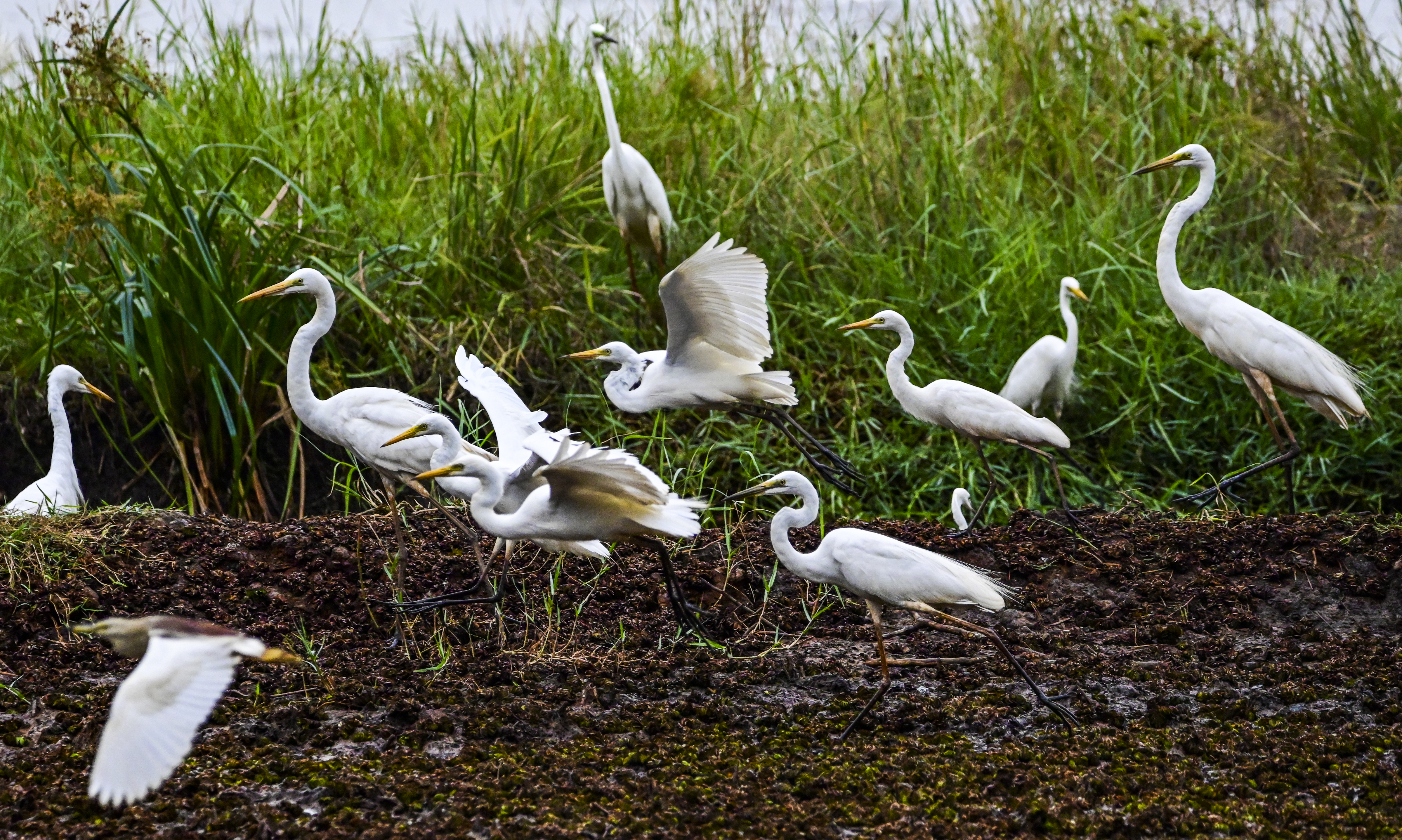 Kumarakom: Great white herons at a field on the outskirts of Kumarakom, Kerala, Thursday, April 10, 2025. (PTI Photo/Kamal Kishore) (PTI04_11_2025_000043B)