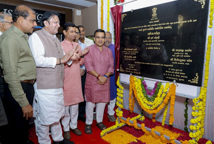 **EDS: THIRD PARTY IMAGE; SPECIAL PACKAGE** In this image received on March 28, 2026, Gujarat Deputy Chief Minister Harsh Sanghavi during inauguration of state-of-the-art Patan Bus Port, in Patan, Gujarat. (Handout via PTI Photo)(PTI03_28_2026_000154B)